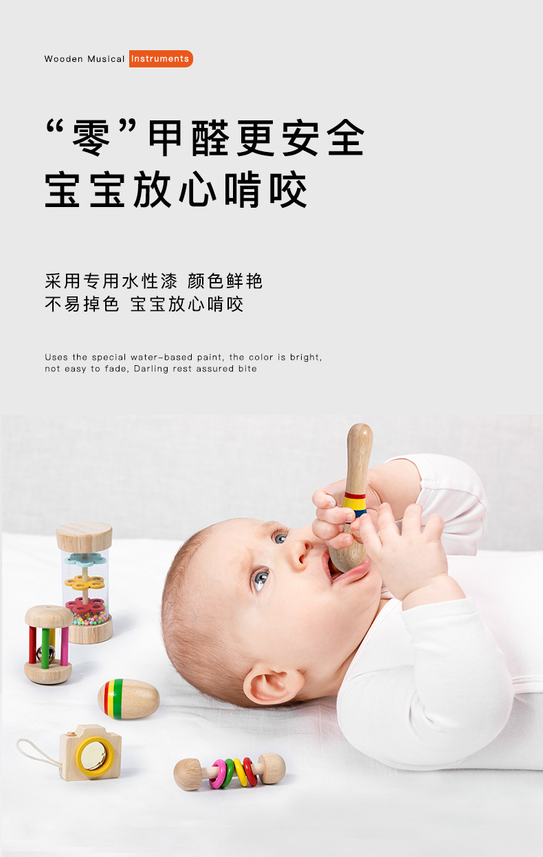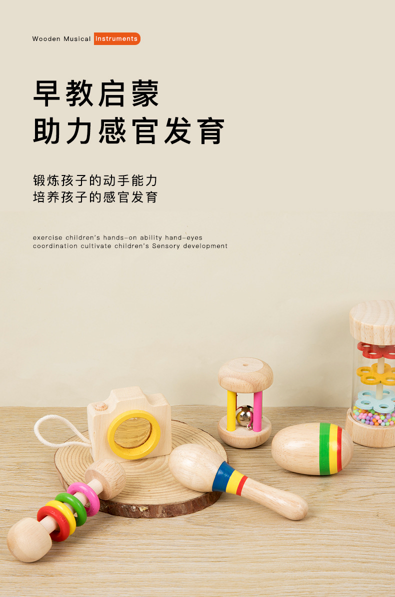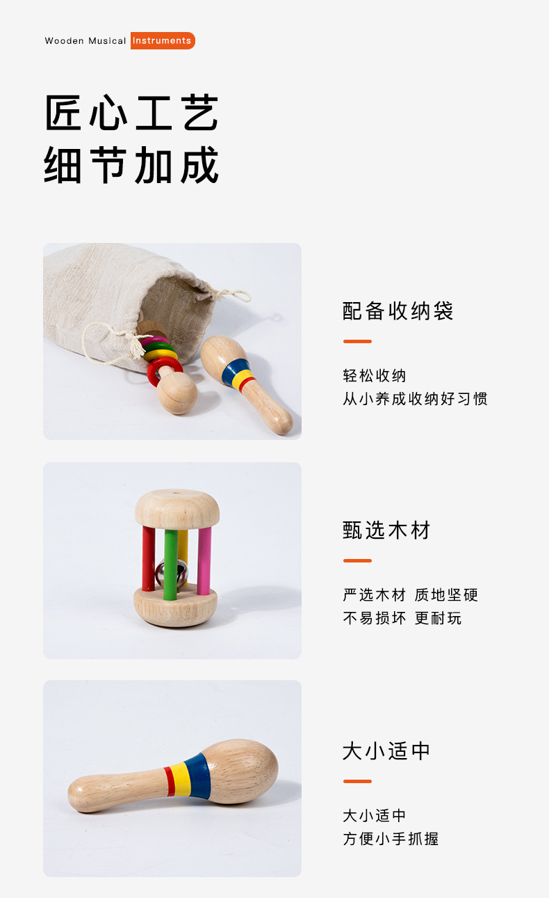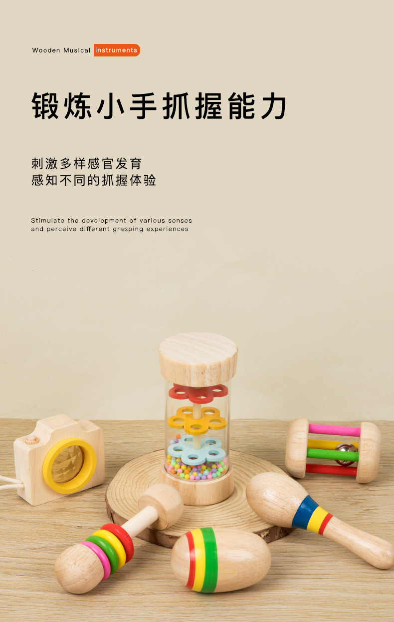 Orff Campana de jaula Campana de agarre de mano de bebé Sonajero Instrumento musical Educación temprana para bebés y niños pequeños Campana de cama de confort Juguetes de madera al por mayor