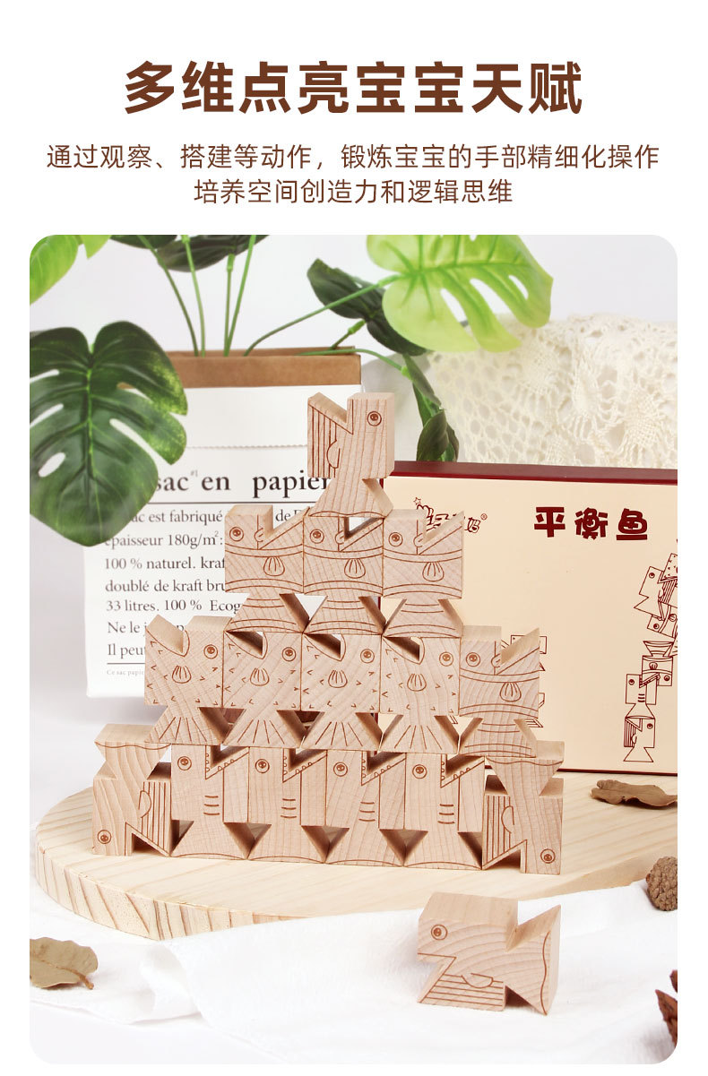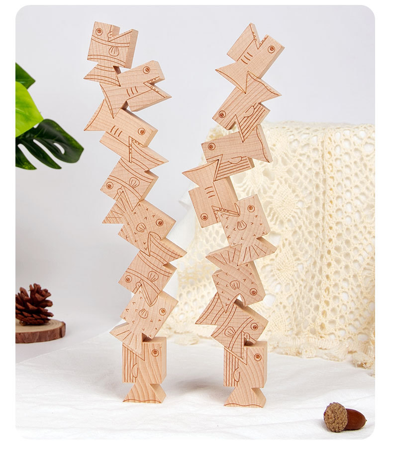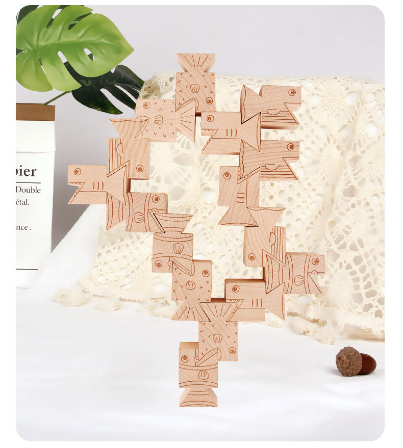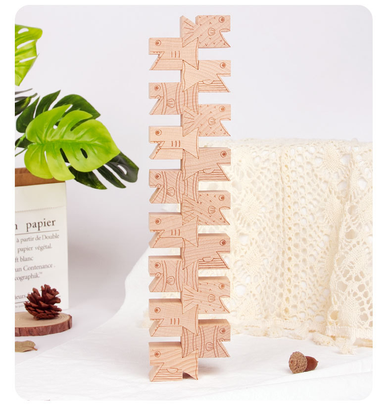 Niños transfronterizos de madera de equilibrio de peces de construcción de bloques apilados en la enseñanza temprana de rompecabezas mano o ojo coordinación de equilibrio apilar juguetes de música