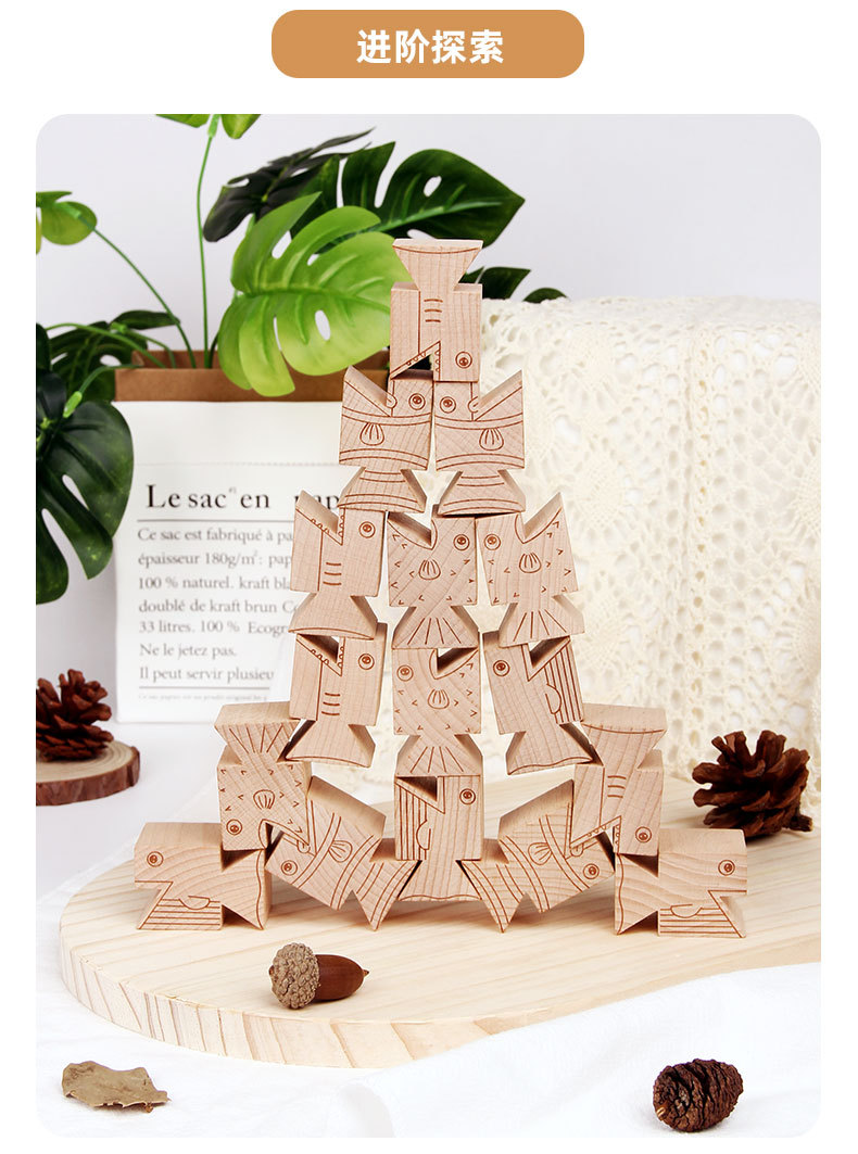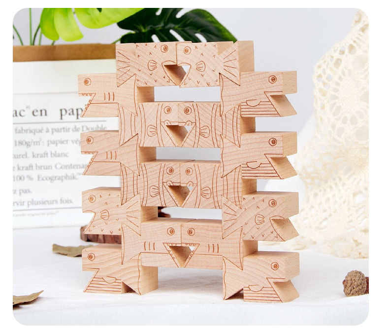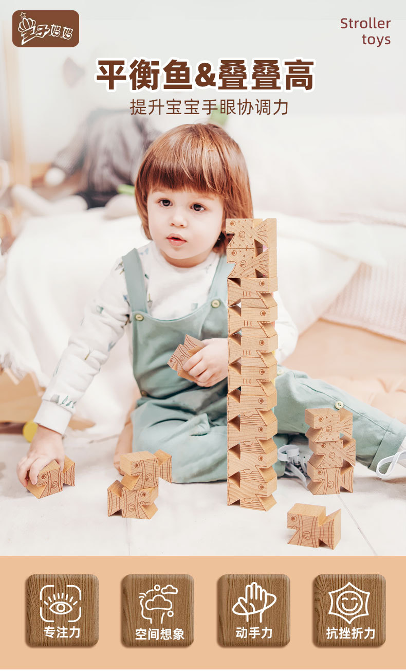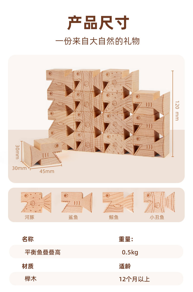 Niños transfronterizos de madera de equilibrio de peces de construcción de bloques apilados en la enseñanza temprana de rompecabezas mano o ojo coordinación de equilibrio apilar juguetes de música