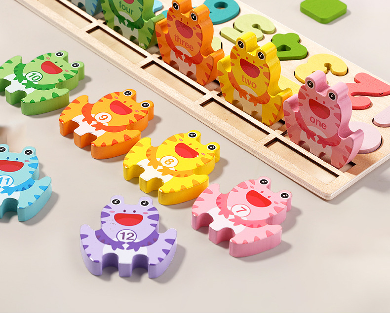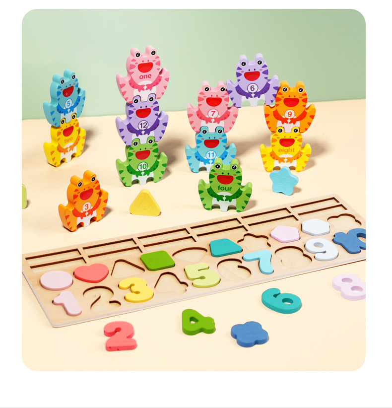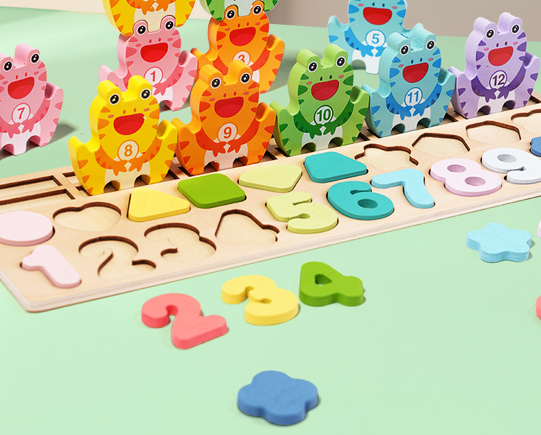 3 - en - 1 rana tablero de log para bebés de educación temprana puzzle de bloques de construcción juguetes para niños pequeños puzzle cognitivo de forma digital