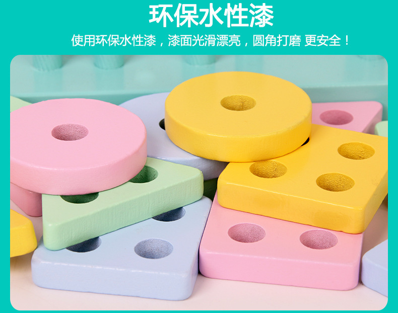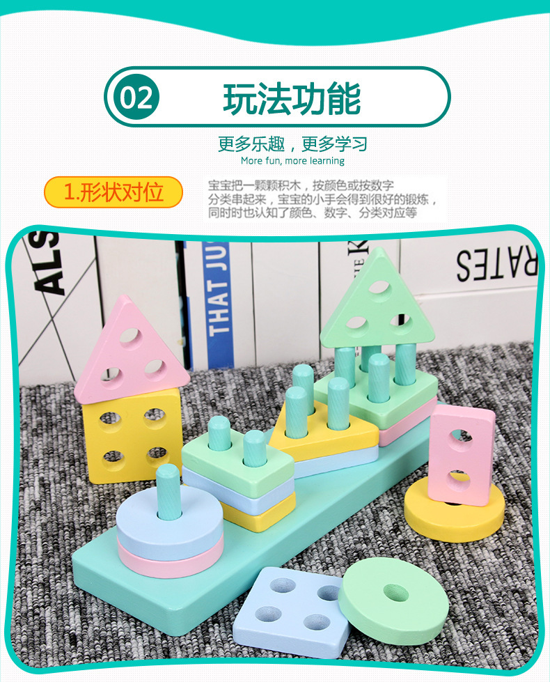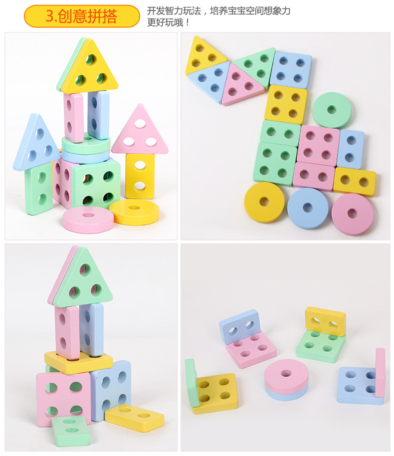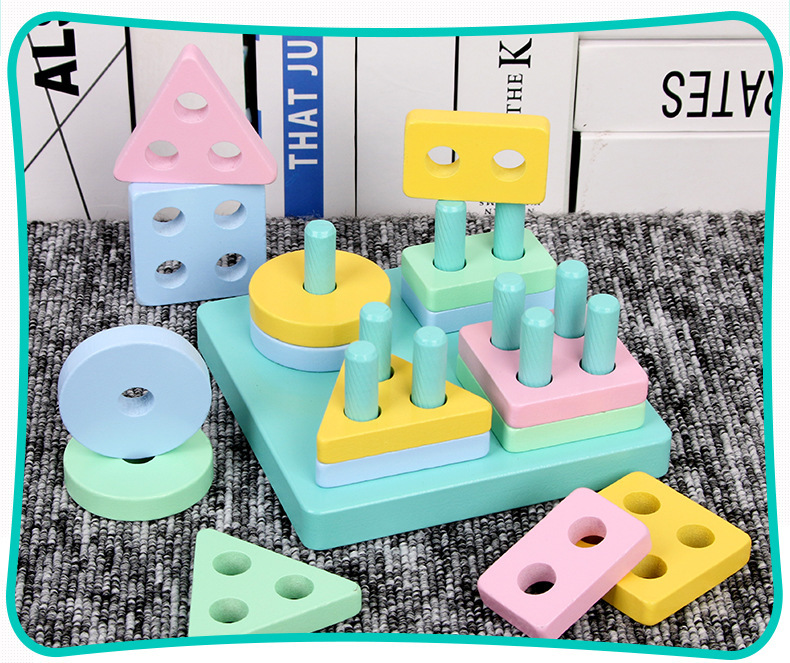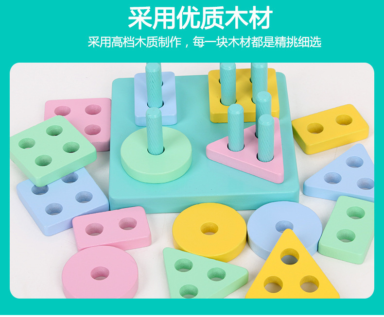 Juguetes de educación temprana para niños, bloques de construcción de cuatro columnas de madera, bloques de construcción de cuatro columnas de forma emparejada, juguetes de puzzle para niños, bloques de construcción