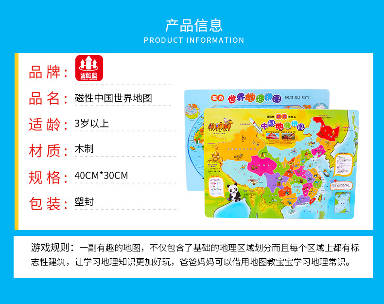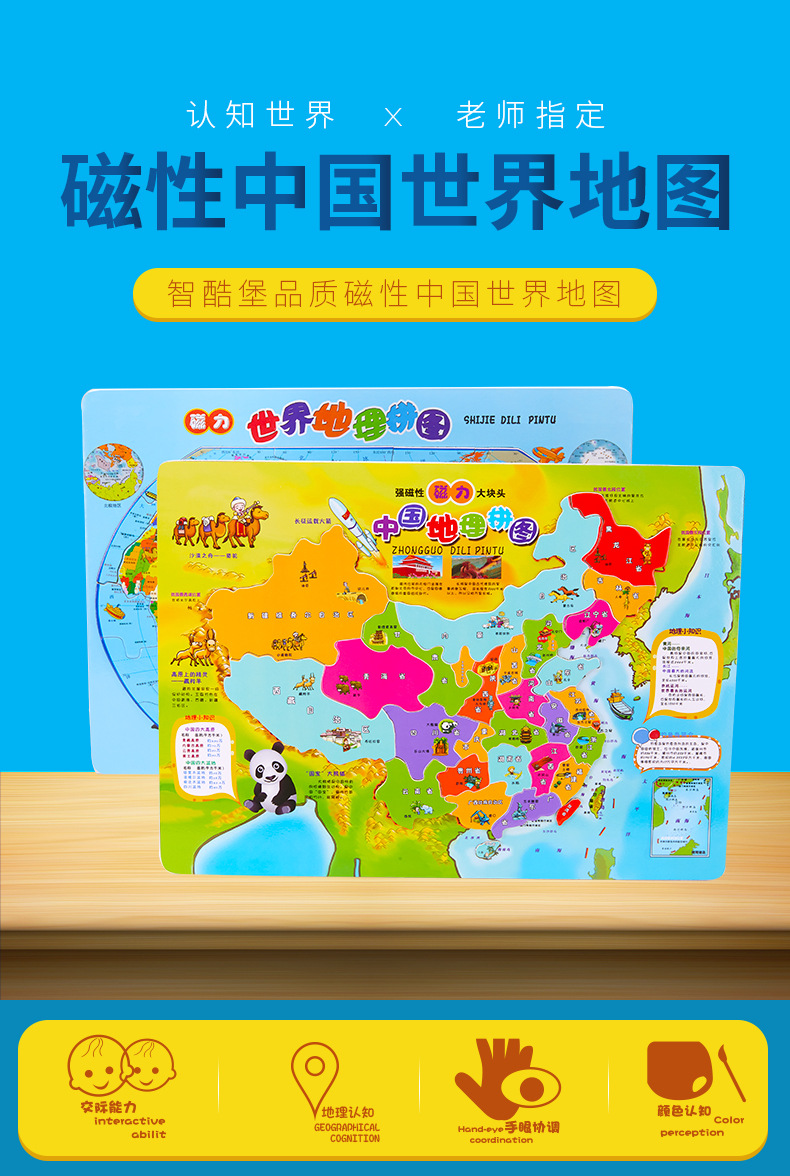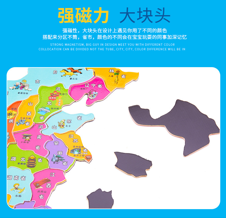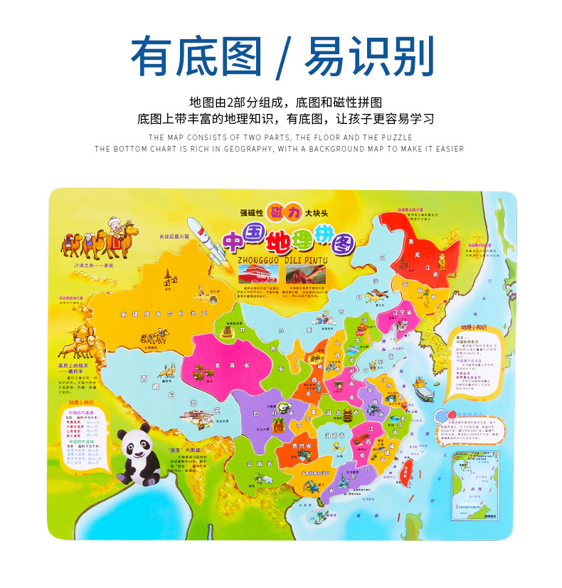 China al por mayor / mundo lección de geografía rompecabezas magnéticos niños rompecabezas de madera educación temprana aprendizaje de la madera geográfica