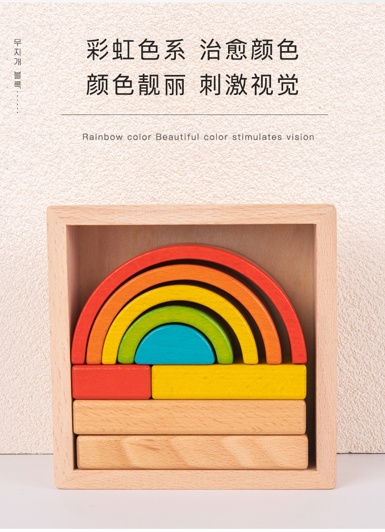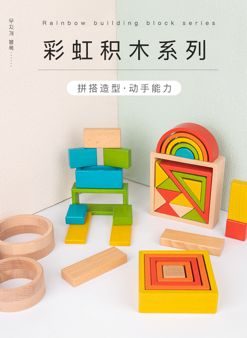 Madre del príncipe arco iris madera de haya regalos de madera sólida niños y niñas educación temprana para construir puzzles de montaña juguetes