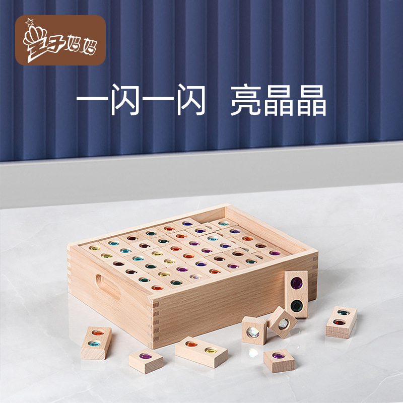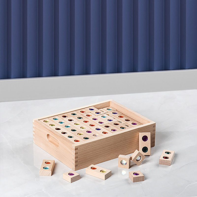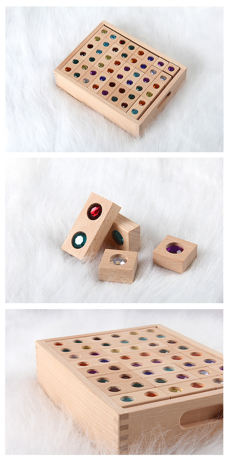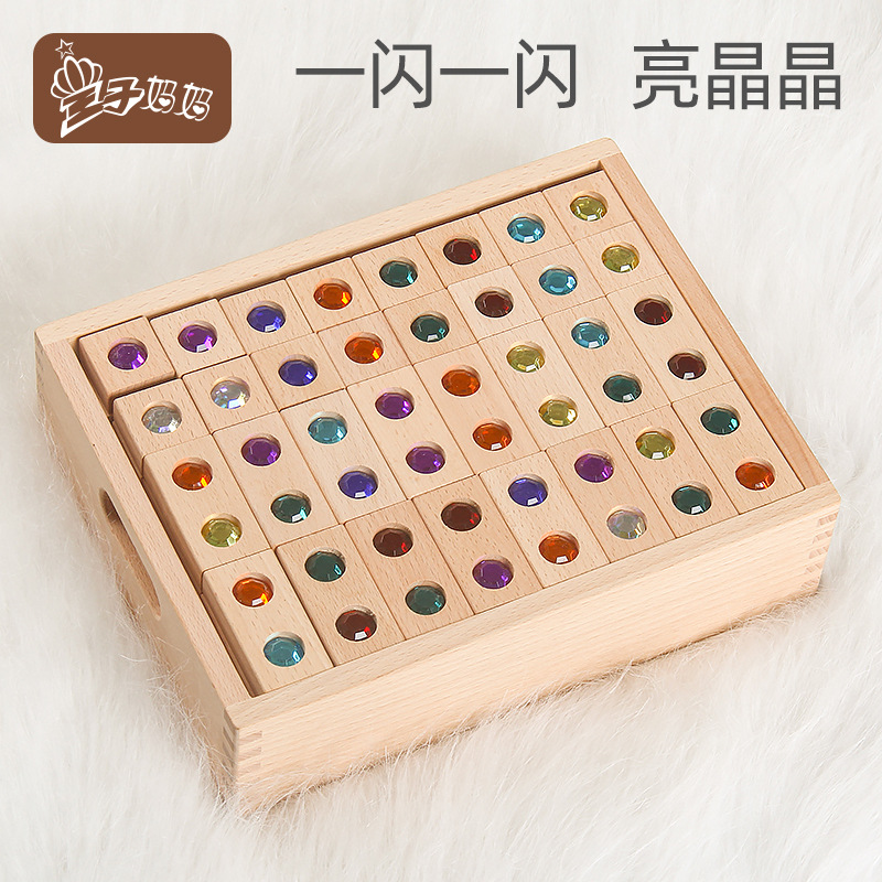 Bloques acrílicos de madera de beech para niños 128 juguetes de piedra preciosa de cristal brillante