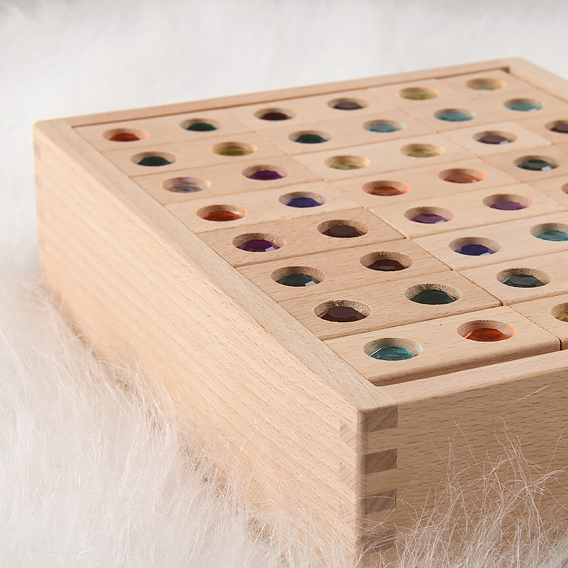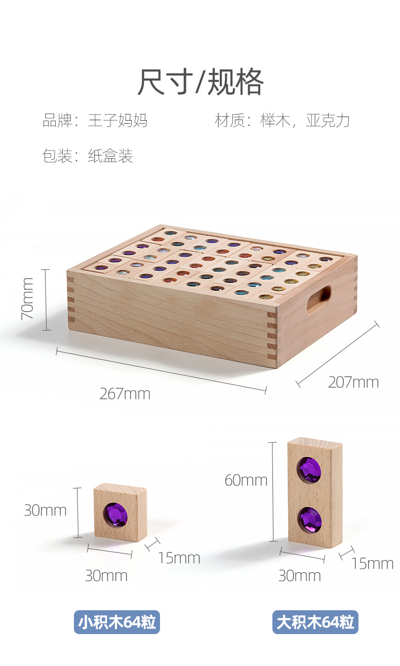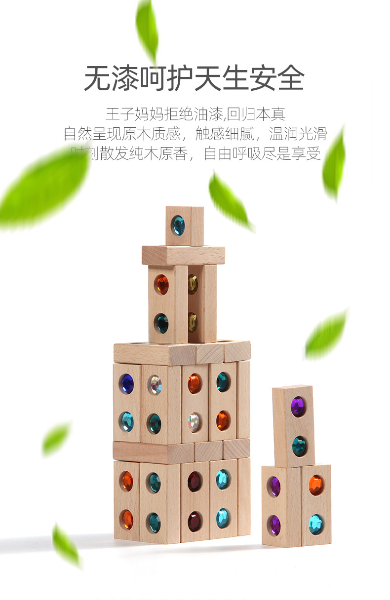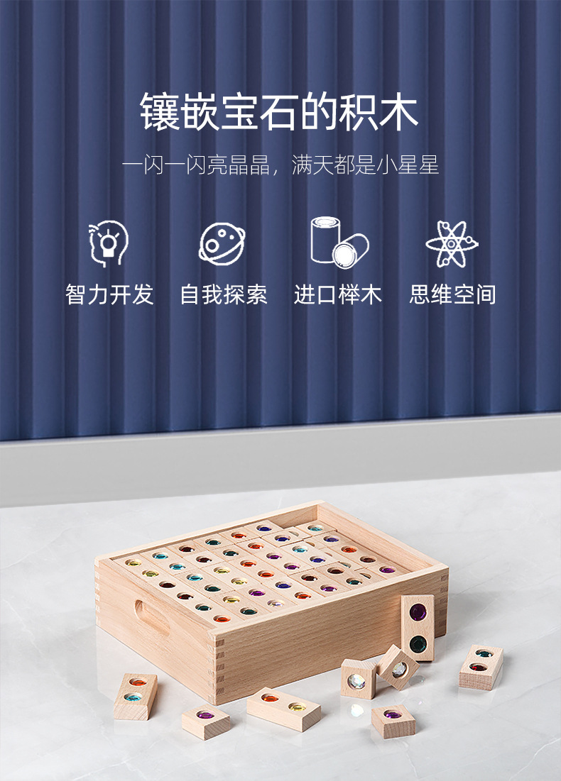 Bloques acrílicos de madera de beech para niños 128 juguetes de piedra preciosa de cristal brillante