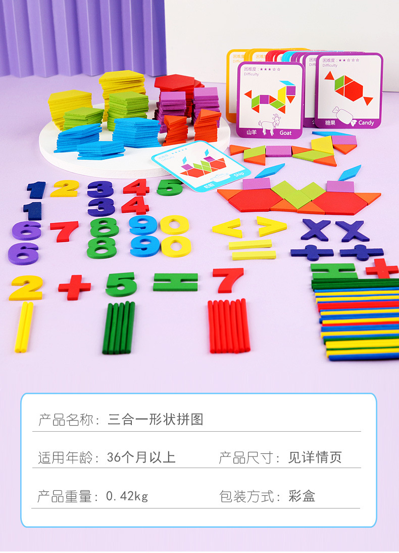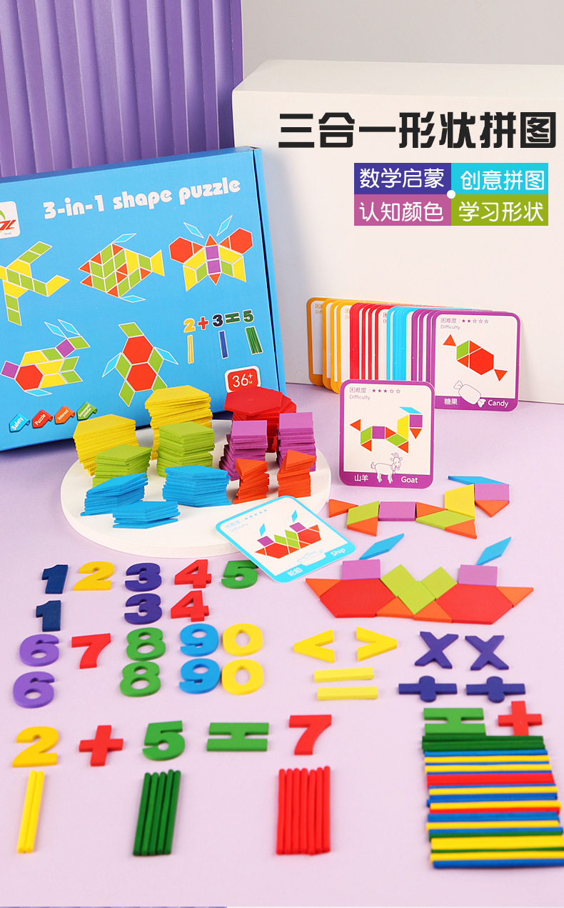 | Número de artículo | Etsg tres en uno rompecabezas creativo de Tangram ae.e |