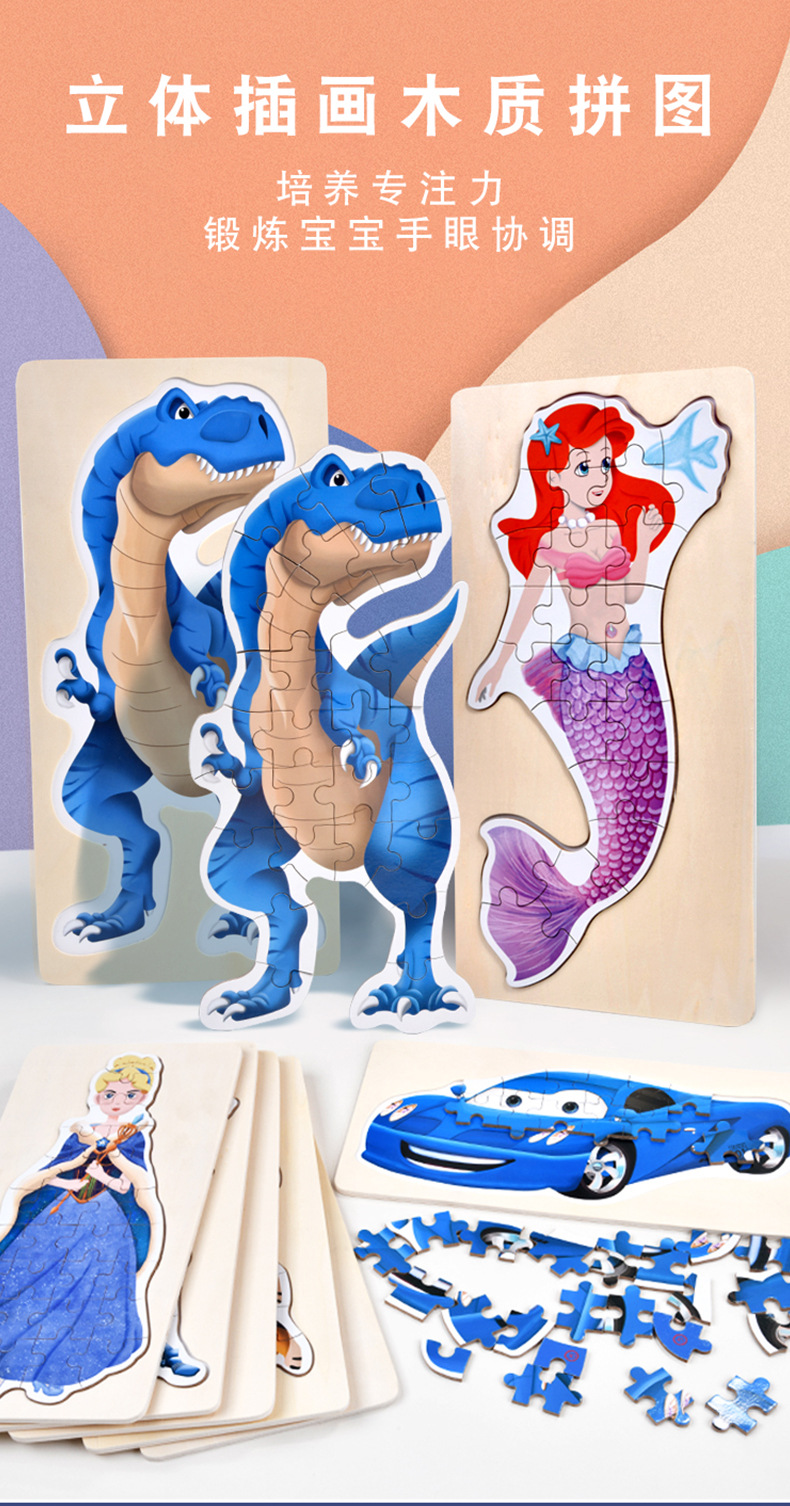 Madera de 0 - 2 - 3 años de edad infantil educación temprana cognitiva aprendizaje de dibujos animados planos dinosaurios tráfico puzzle juguetes de bloques de construcción