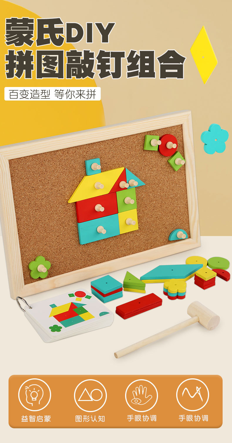 Juguetes de madera Monkey Claws Juguetes de niños de jardín de infantes entrenamiento de clavos puzzle al por mayor