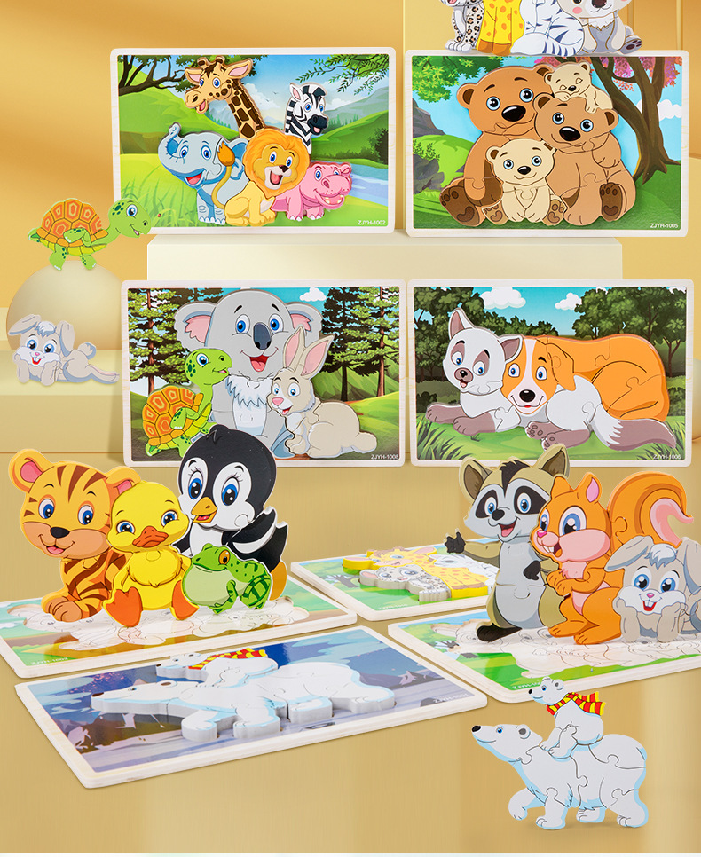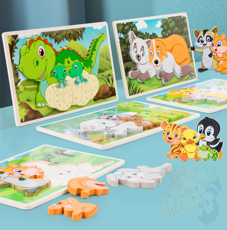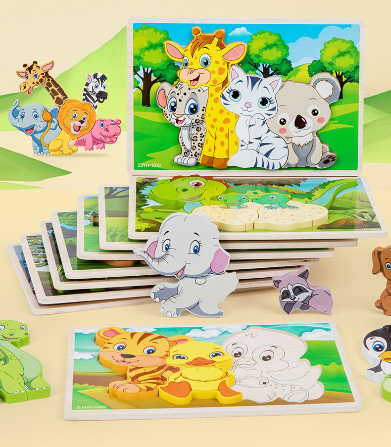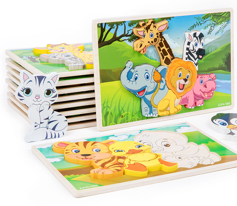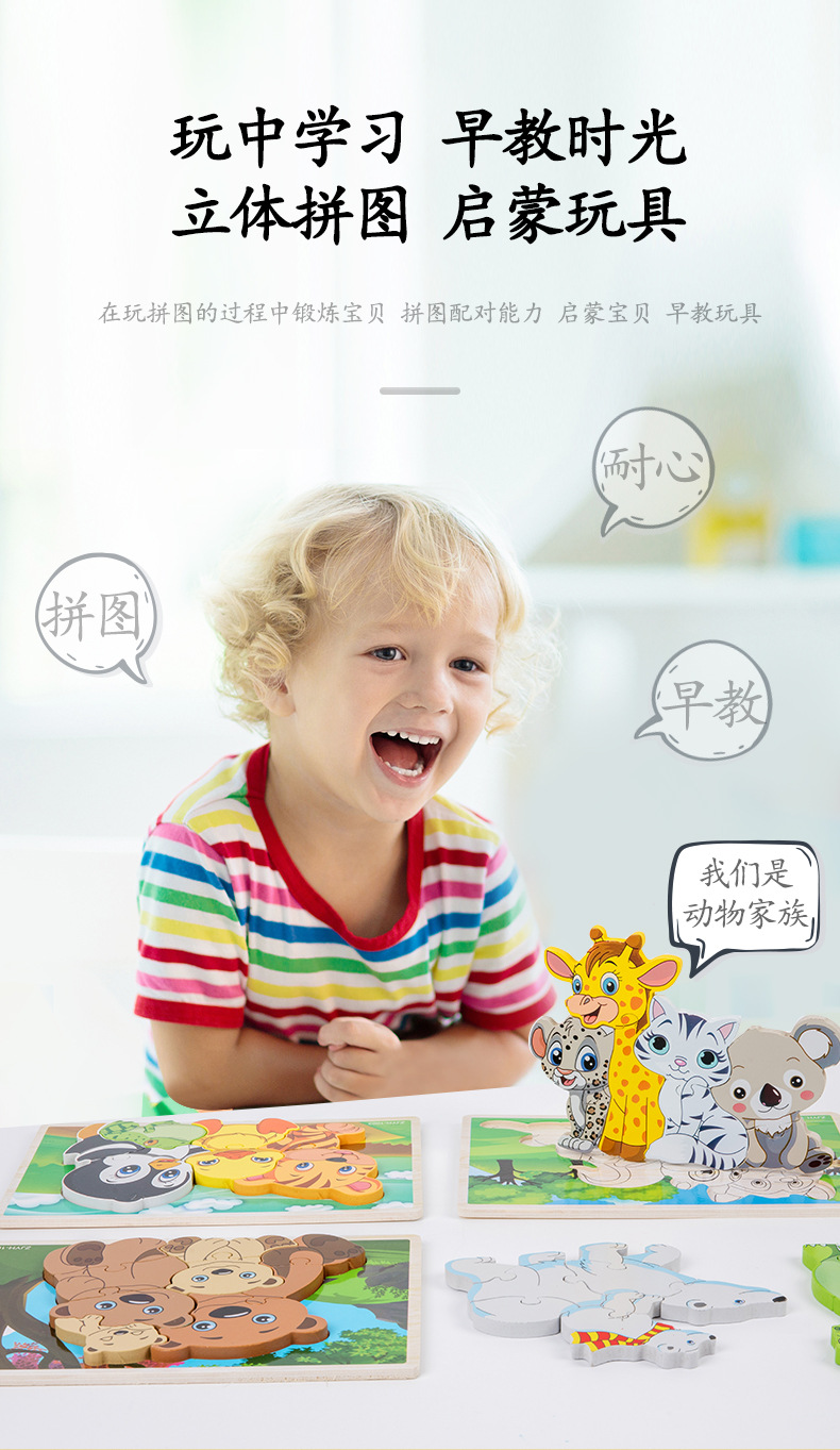 Puzzles de madera tridimensionales bloques de juguetes de construcción para niños 1 1 2 - 3D años y medio 6 niños niñas educación temprana