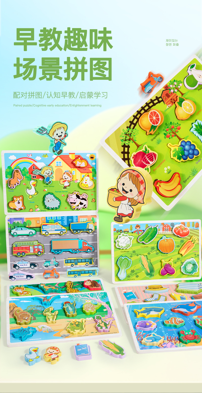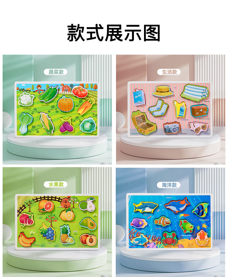 Niños animales digitales iluminación verduras y frutas cognitivo rompecabezas estereoscópicos bebé mano agarrando juguetes de bloques