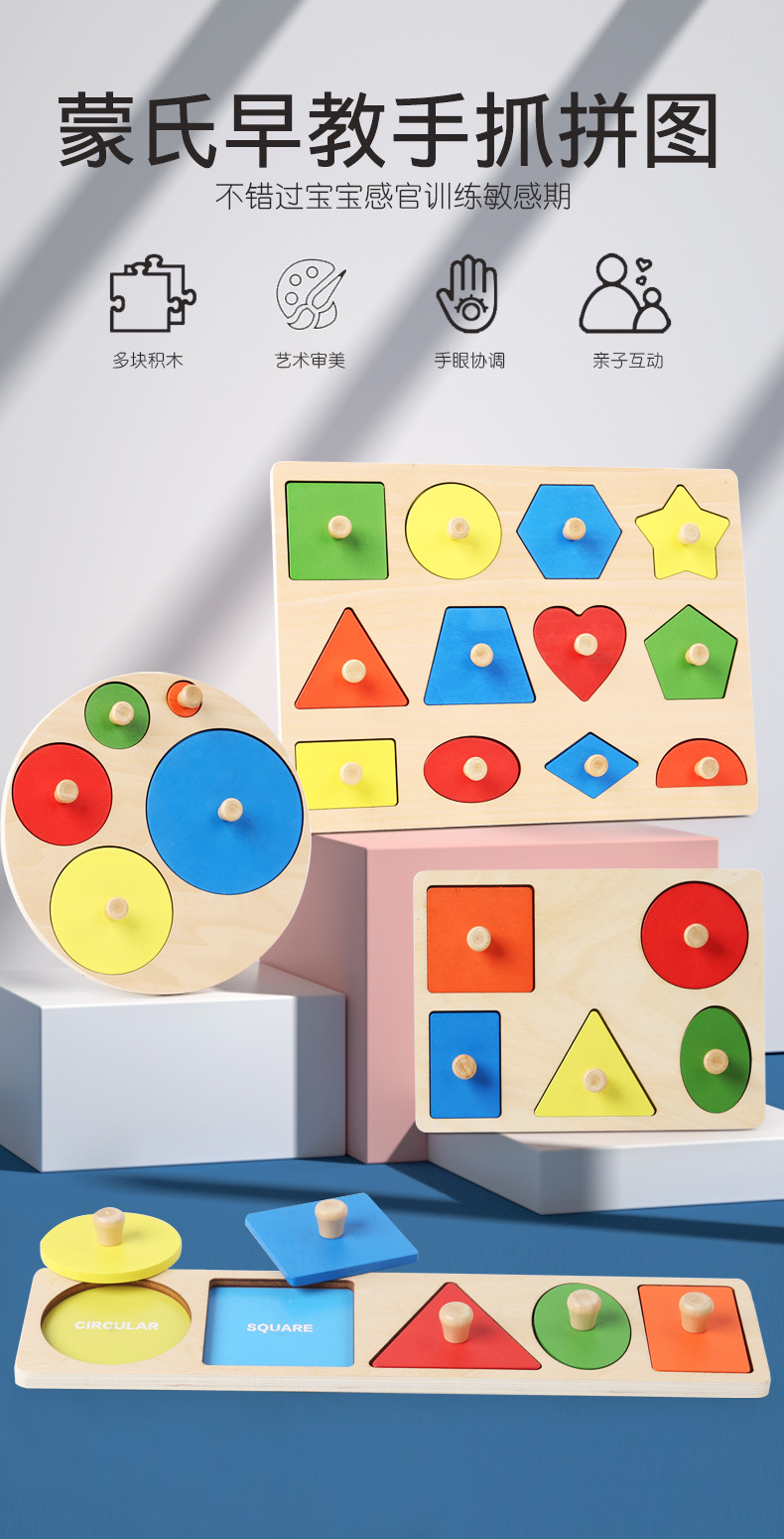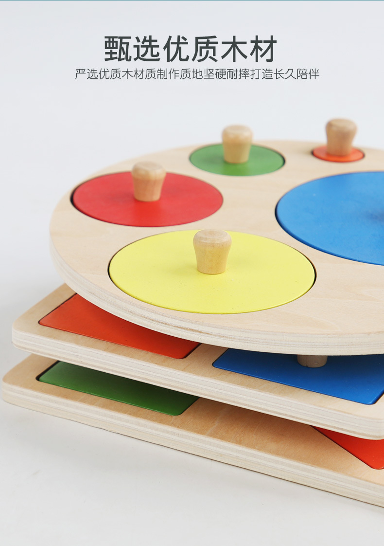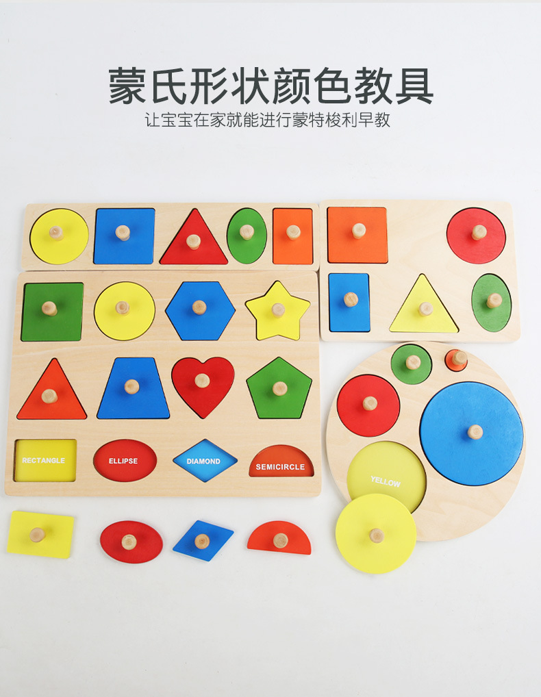 Niños pequeños, niñas, bebés, educación temprana, formas, combinación de colores, mosaico, tablero de rompecabezas de juguetes de madera, tablero de agarre de mano