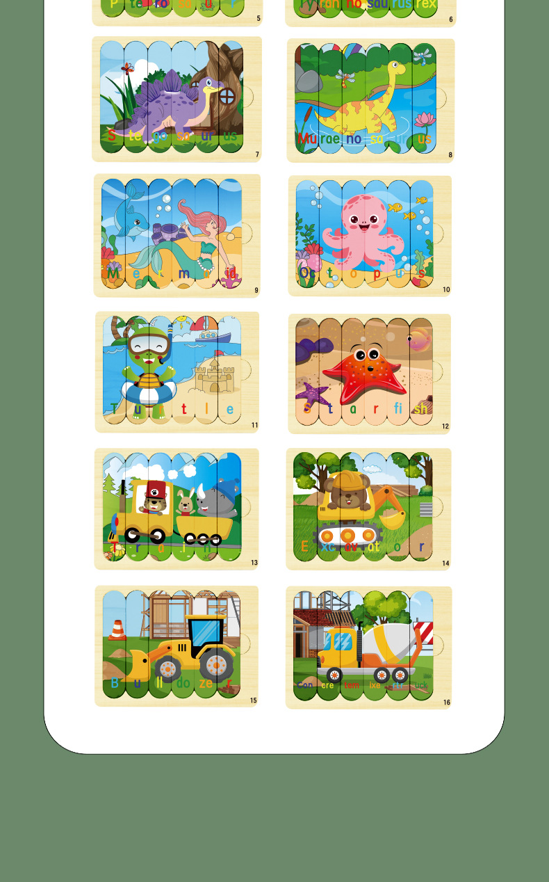 | Color | Mono - pequeña versión de rompecabezas de barra, burro - pequeña versión de rompecabezas de barra, Tigre - pequeña versión de rompecabezas de barra, León - pequeña versión de rompecabezas de barra, pterosaurio - pequeña versión de rompecabezas de barra, Tyrannosaurus Rex - pequeña versión de rompecabezas de barra, jianlong - pequeña versión de rompecabezas de barra, lianglong - pequeña versión de rompecabezas de barra, sirena - pequeña versión de rompecabezas de barra, pulpo - pequeña versión de rompecabezas de barra, tortuga - pequeña versión de rompecabezas de barra, estrella de mar - pequeña versión de rompecabezas de barra, tren - pequeña versión de rompecabezas de barra, excavadora - pequeño rompecabezas de barra, carrito de empuje - pequeño tamaño, camión cisterna - pequeño rompecabezas de barra de barra - pequeño tamaño de rompecabezas de barra |