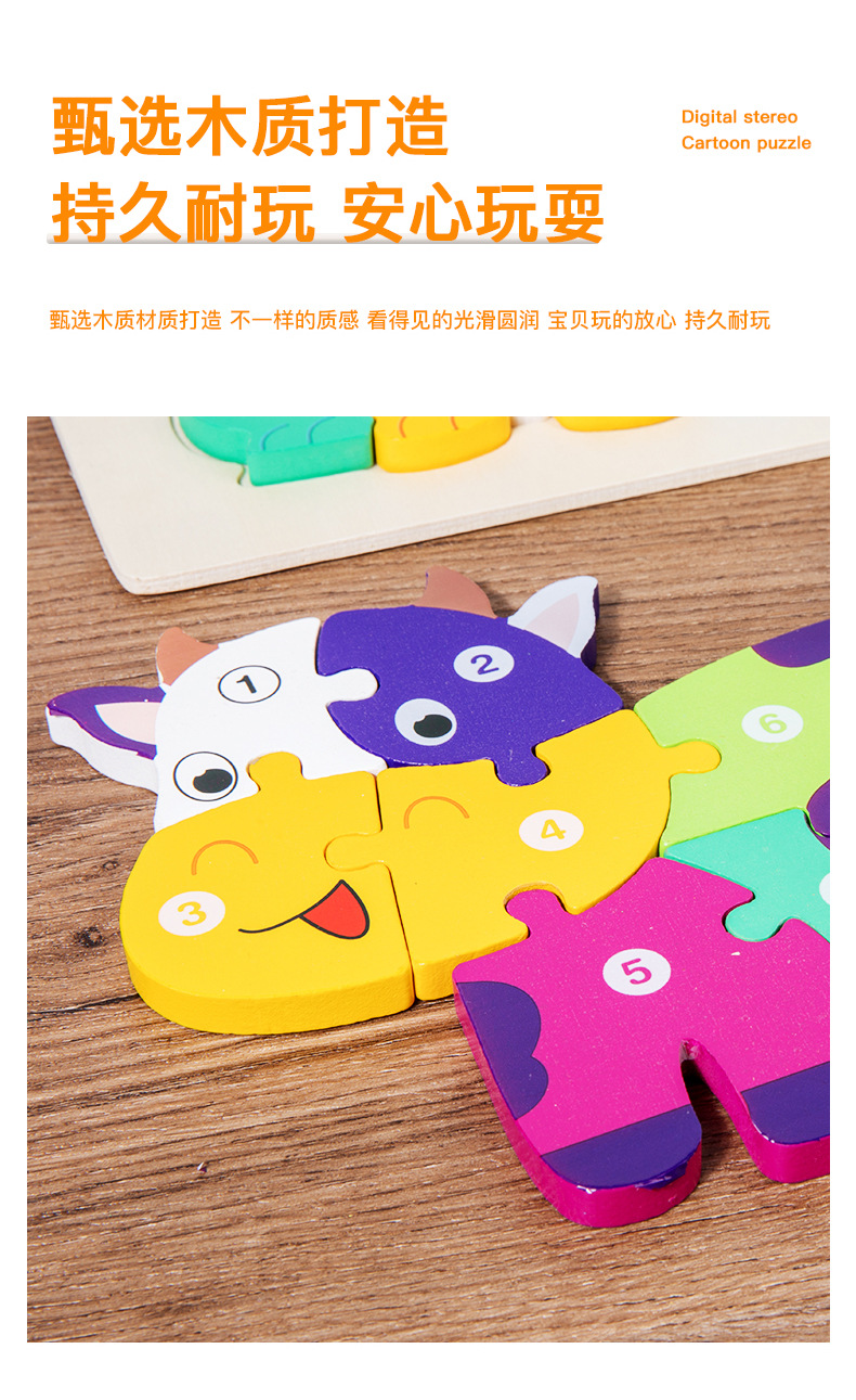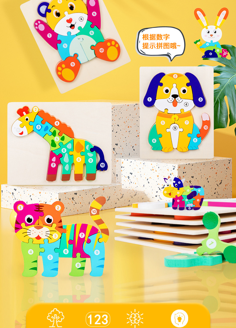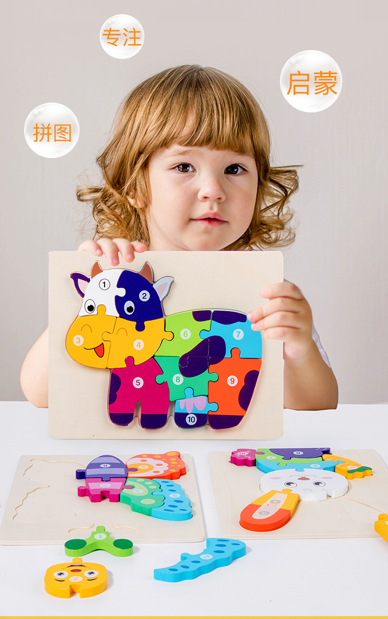 Rompecabezas de animales para niños 0-3 años de edad nivel de entrada Bebé simple grande ensamblado juguetes de educación temprana rompecabezas de inteligencia para niños