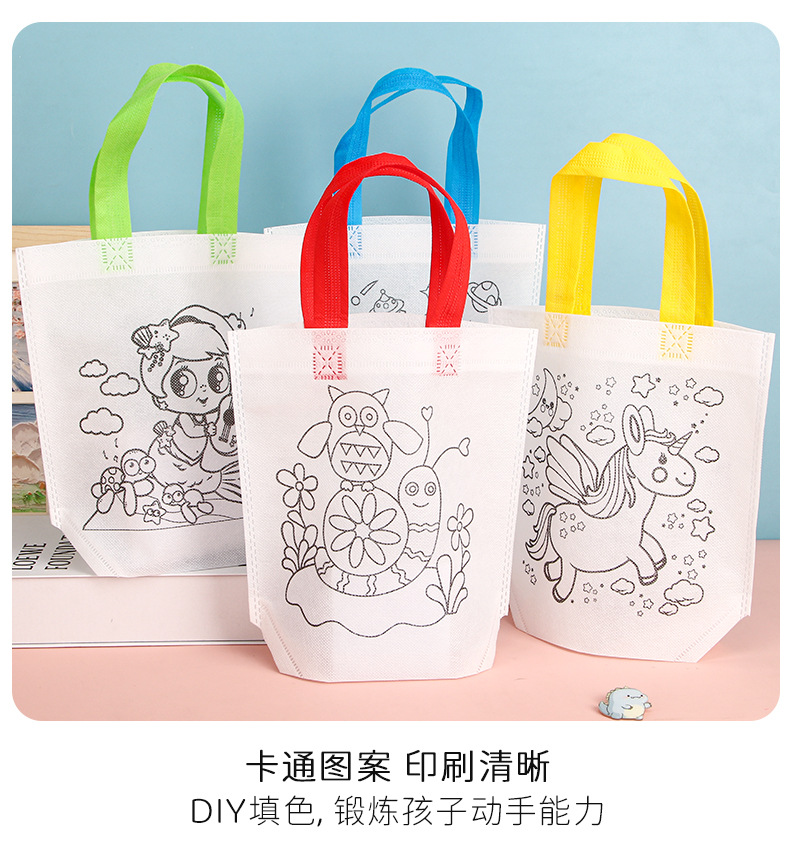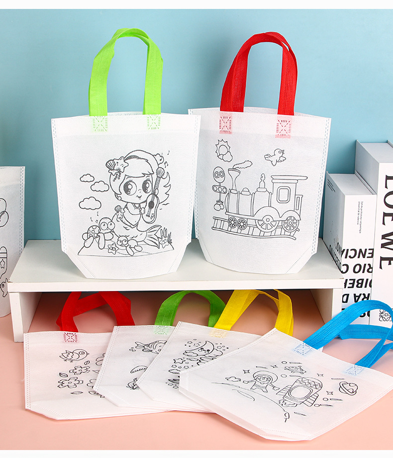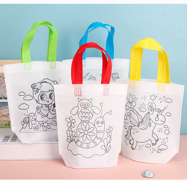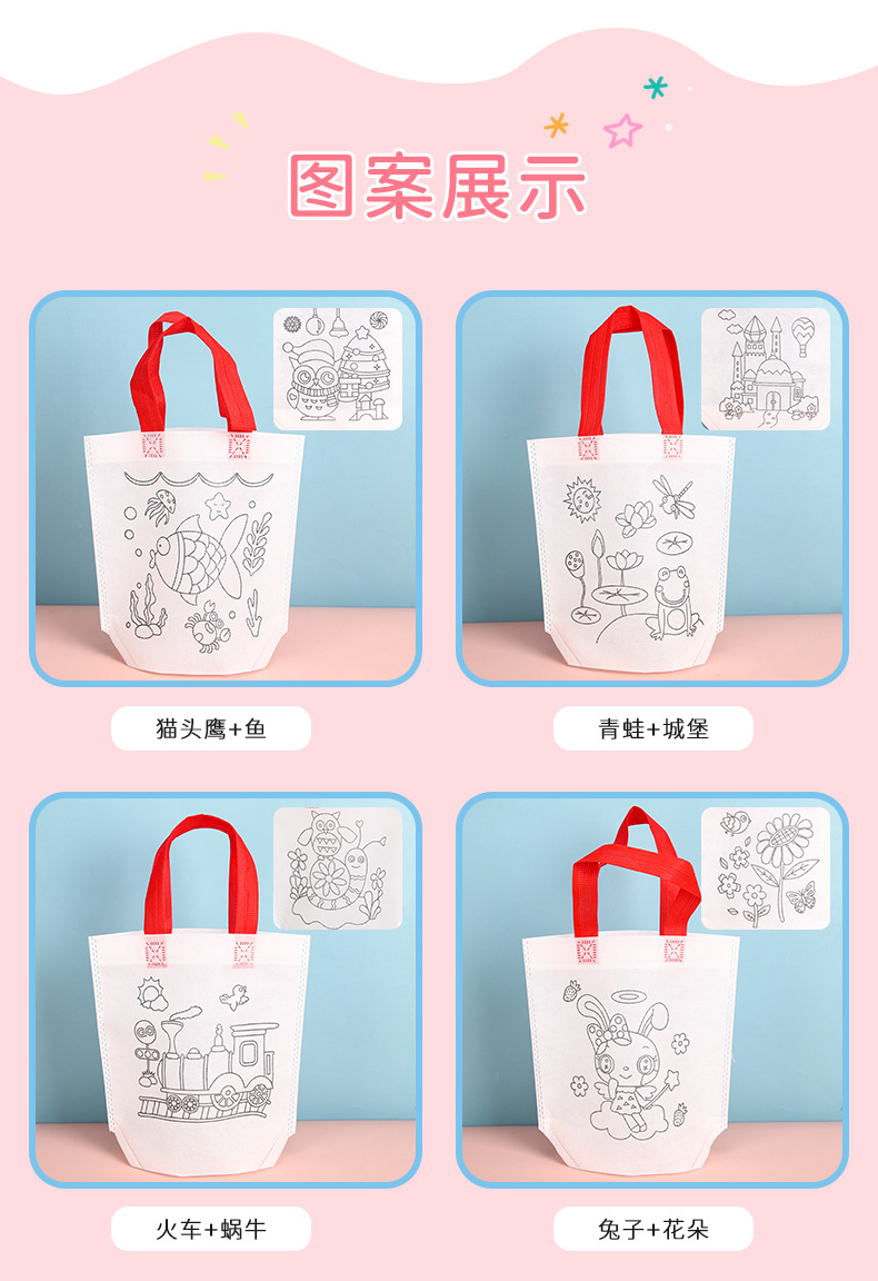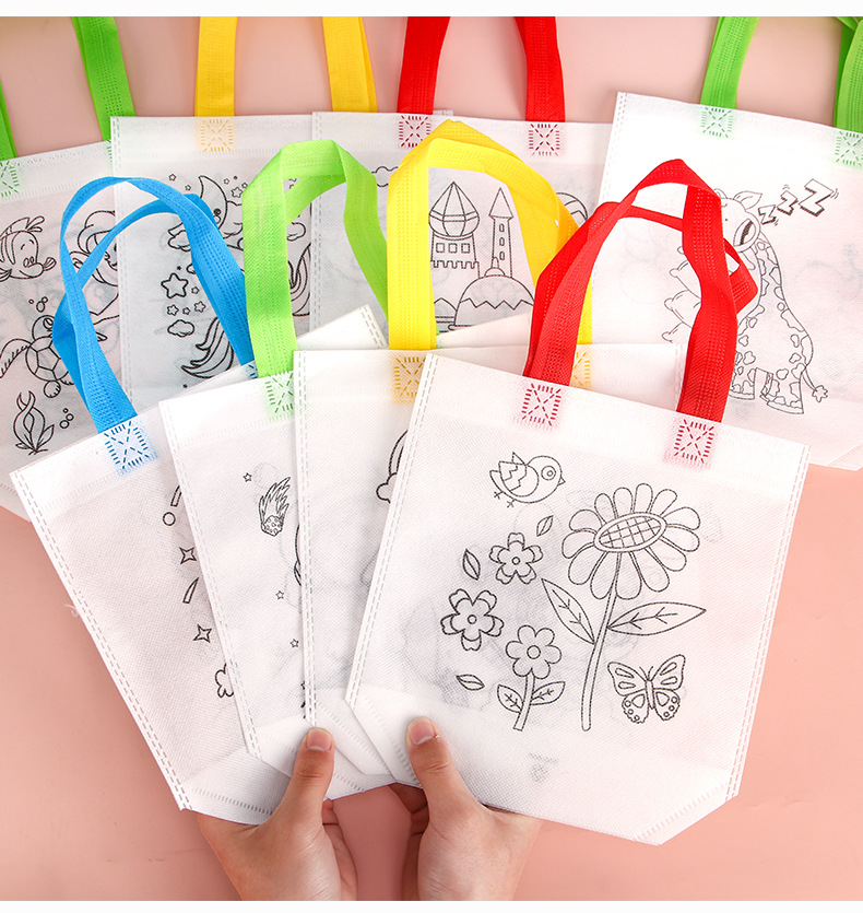Niños hechos a mano DIY pintando bolsas de graffiti personalizadas regalo de jardín de infantes dibujos animados no tejidos pintura relleno bolsas de mano
