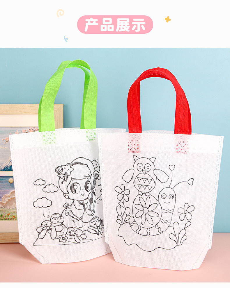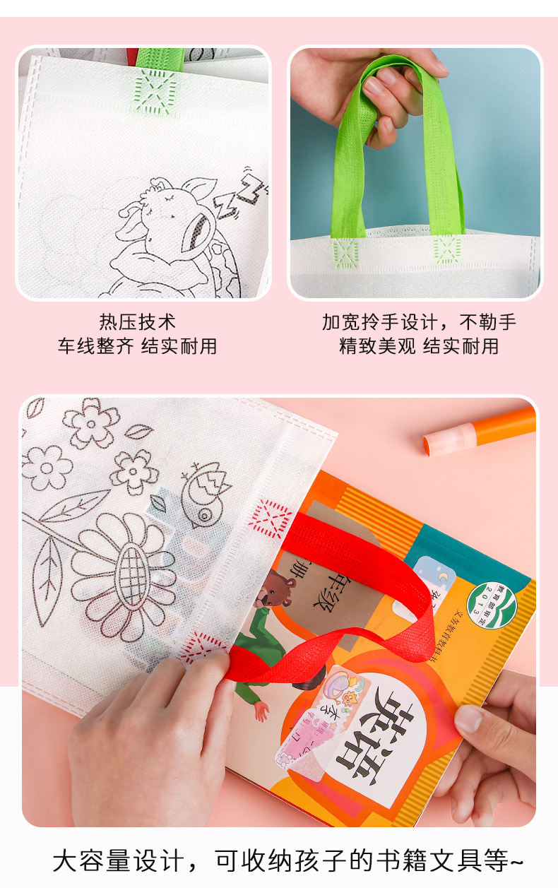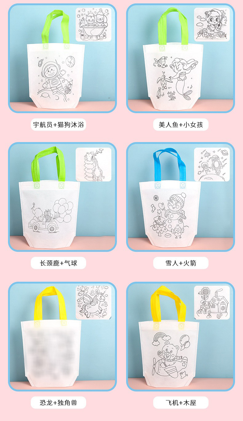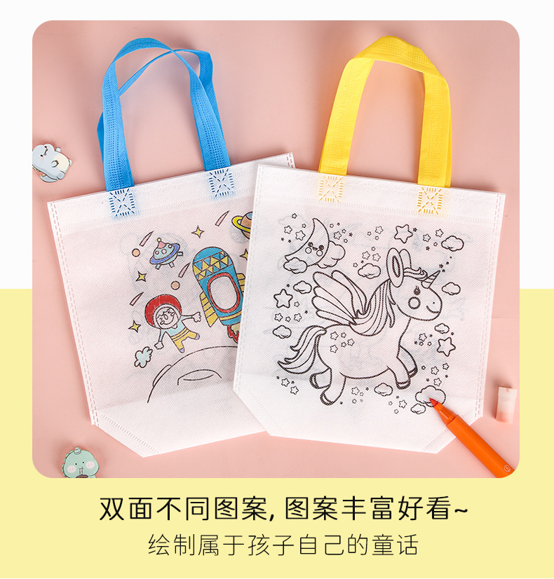 Niños hechos a mano DIY pintando bolsas de graffiti personalizadas regalo de jardín de infantes dibujos animados no tejidos pintura relleno bolsas de mano