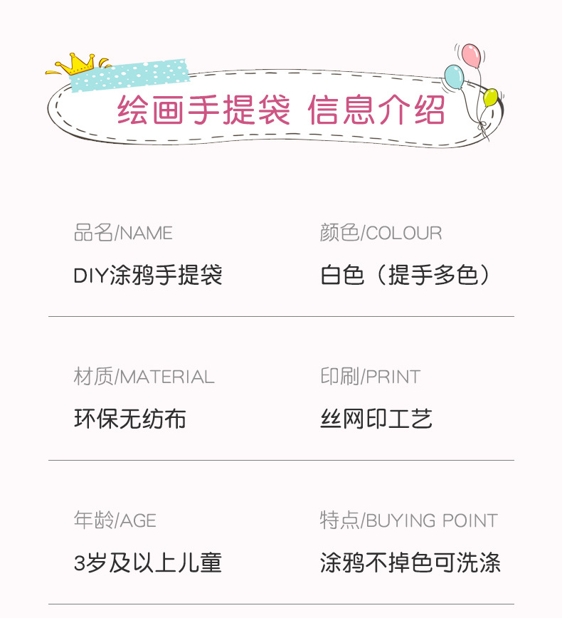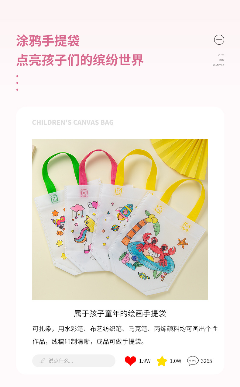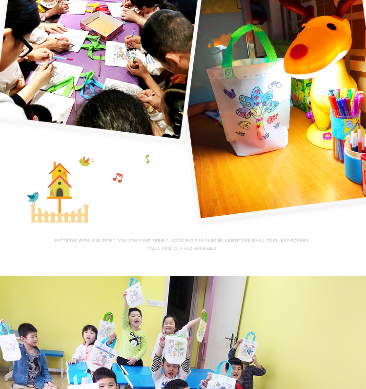 Bolso de graffiti de pintura de bricolaje hecho a mano para niños, regalo de jardín de infantes, dibujo de tela no tejida de dibujos animados, bolsa de tela de mano para colorear