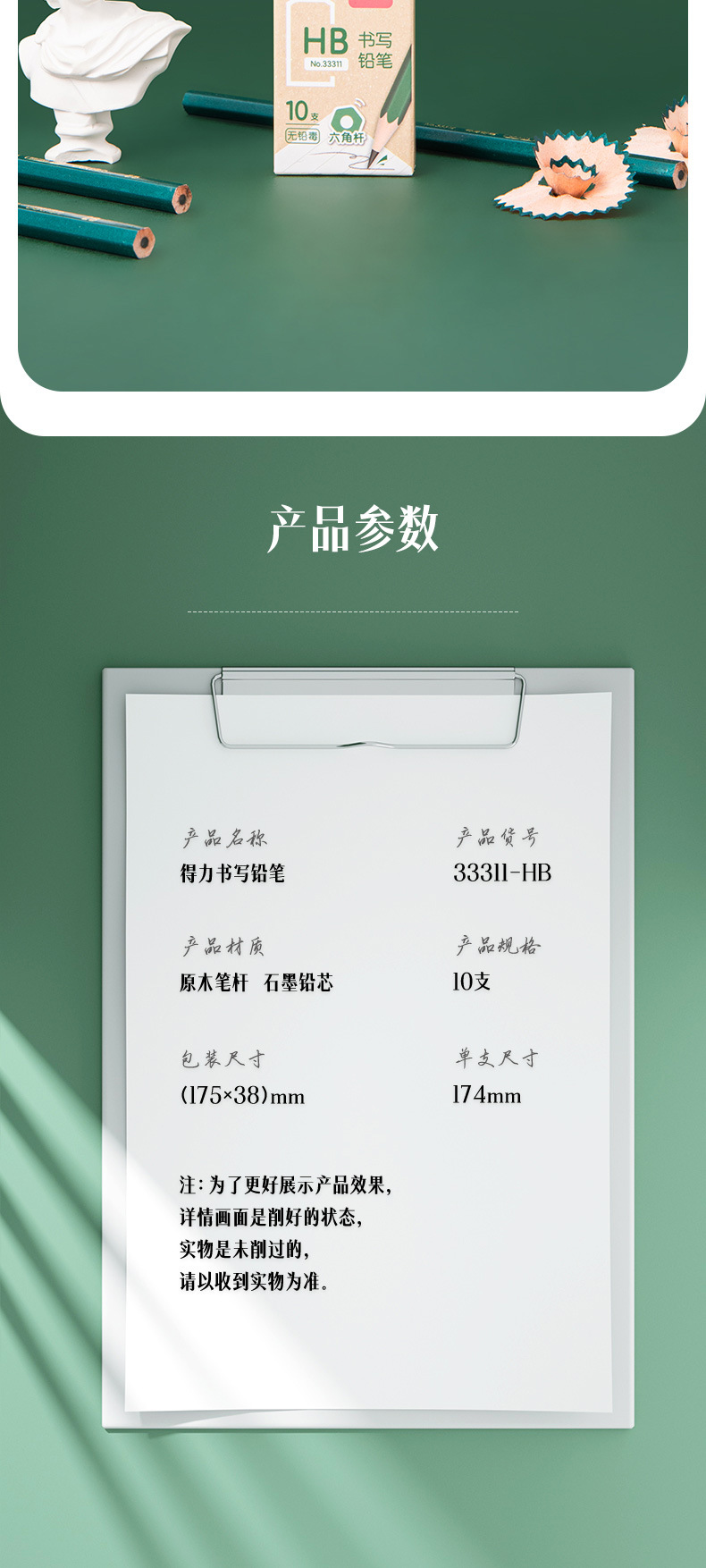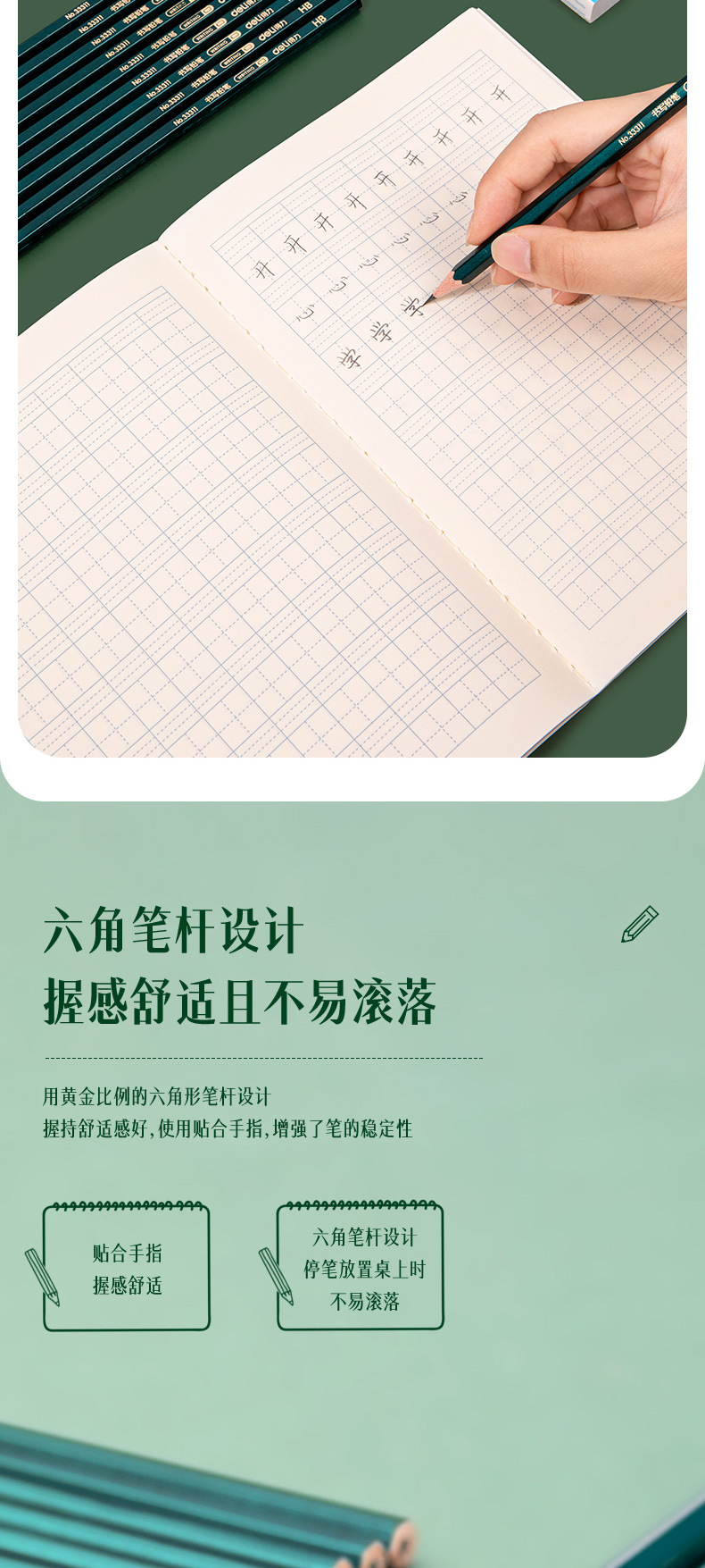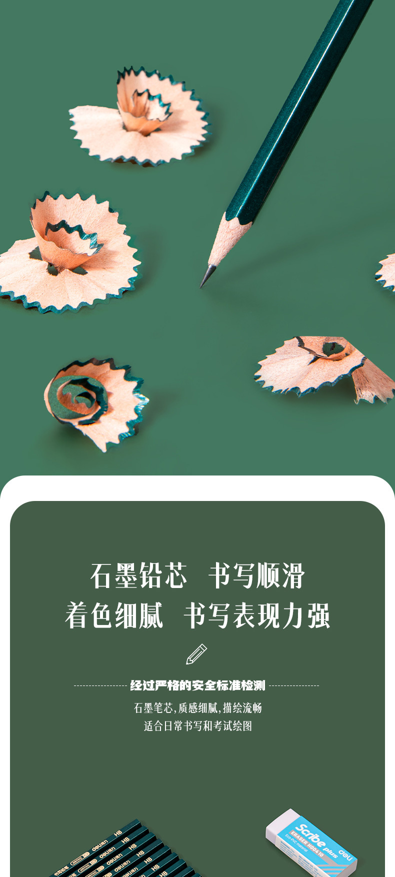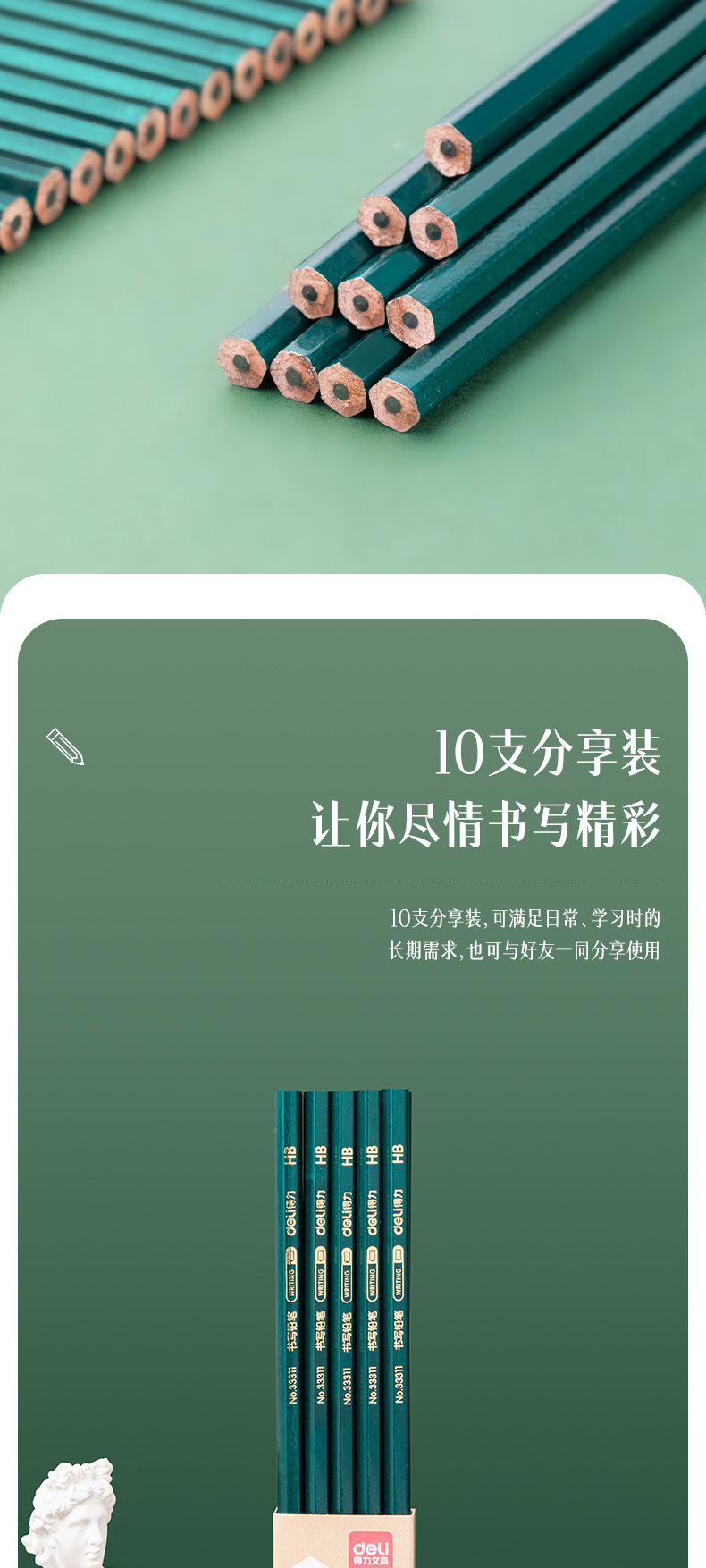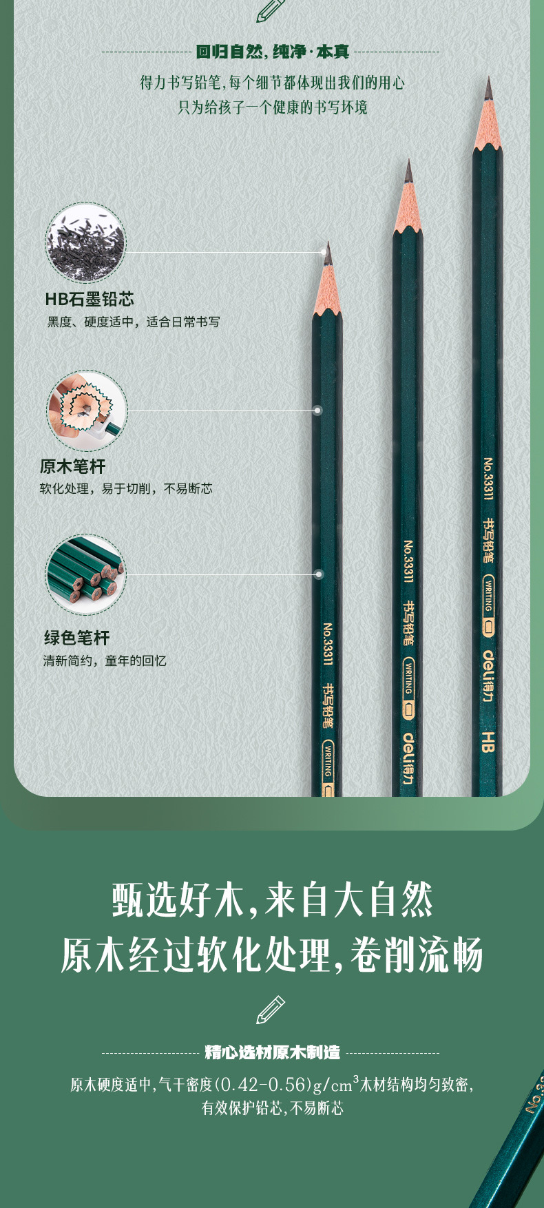Deli 33311 Tronco de varilla verde para estudiantes de primaria con examen de escritura, dibujo, dibujo, dibujo, dibujo, lápiz de escritura para niños pequeños 2