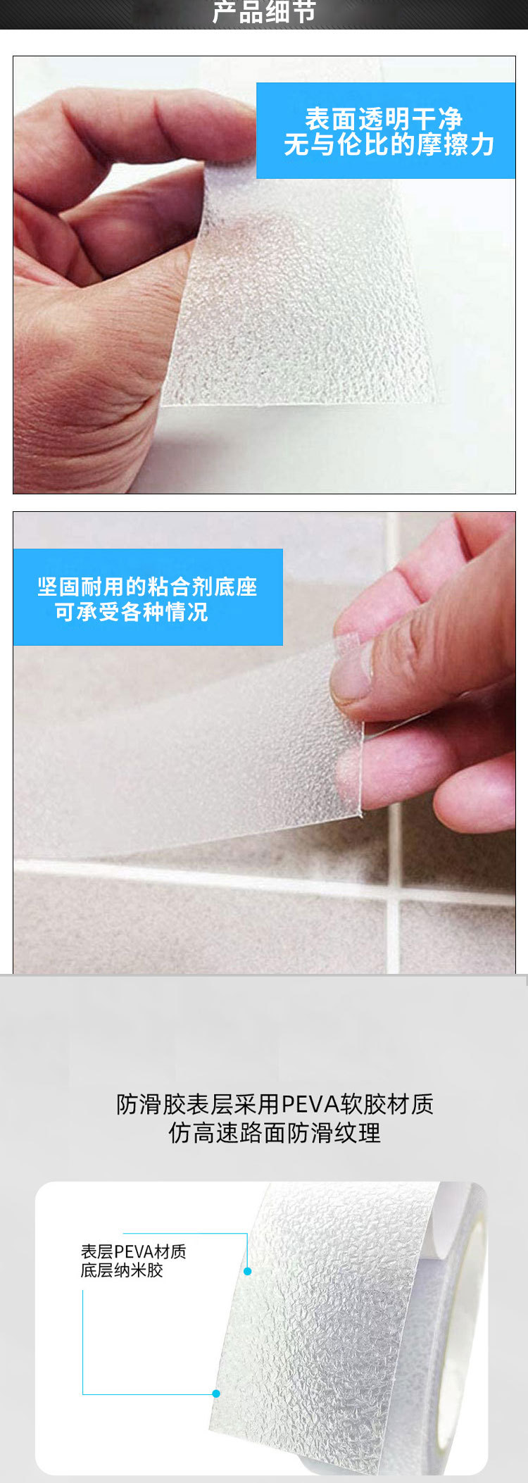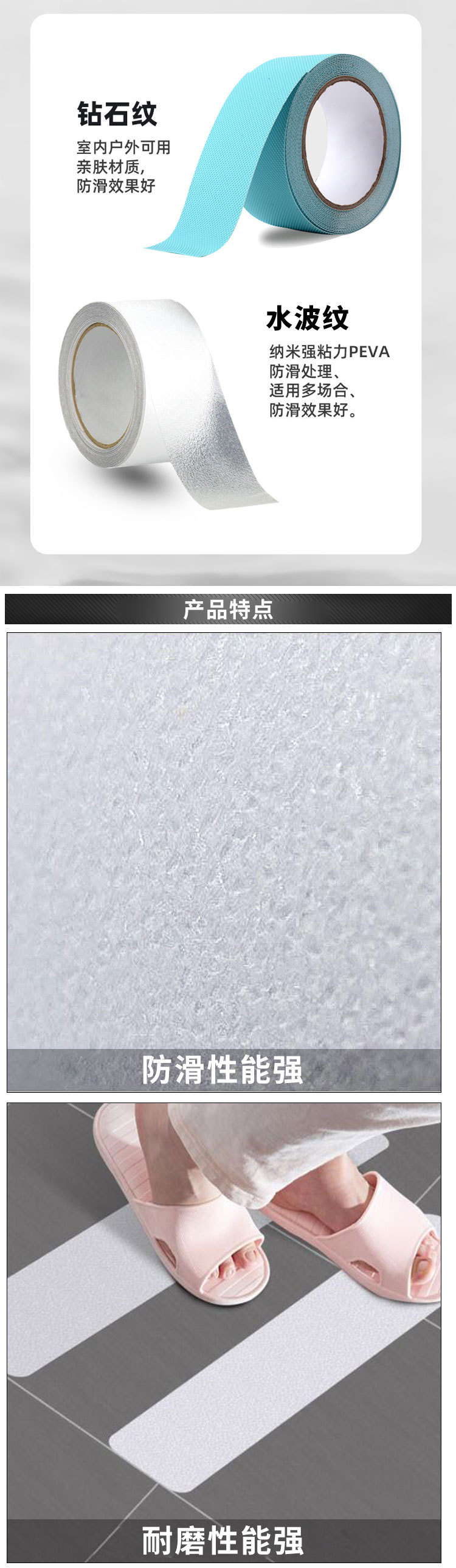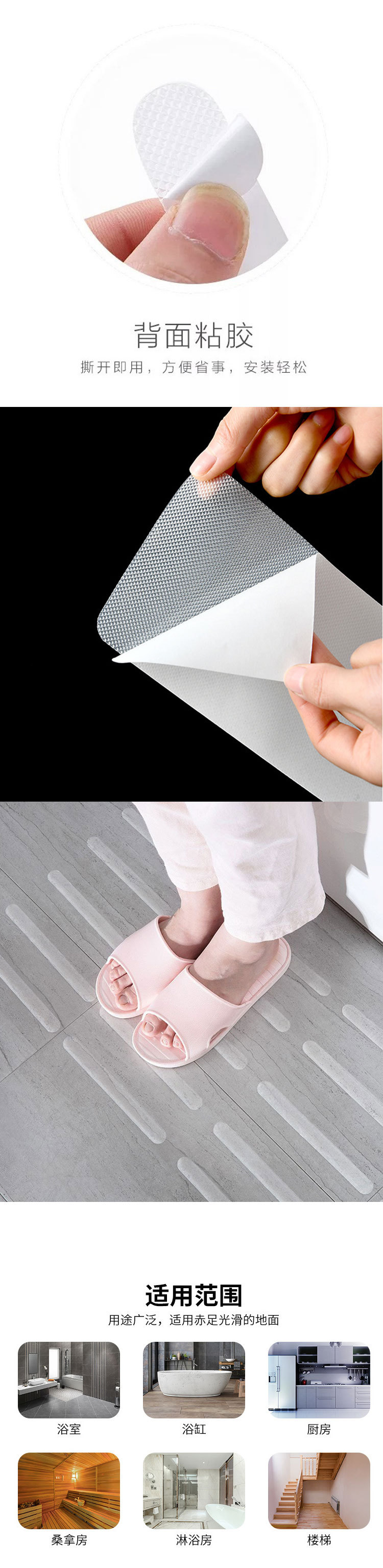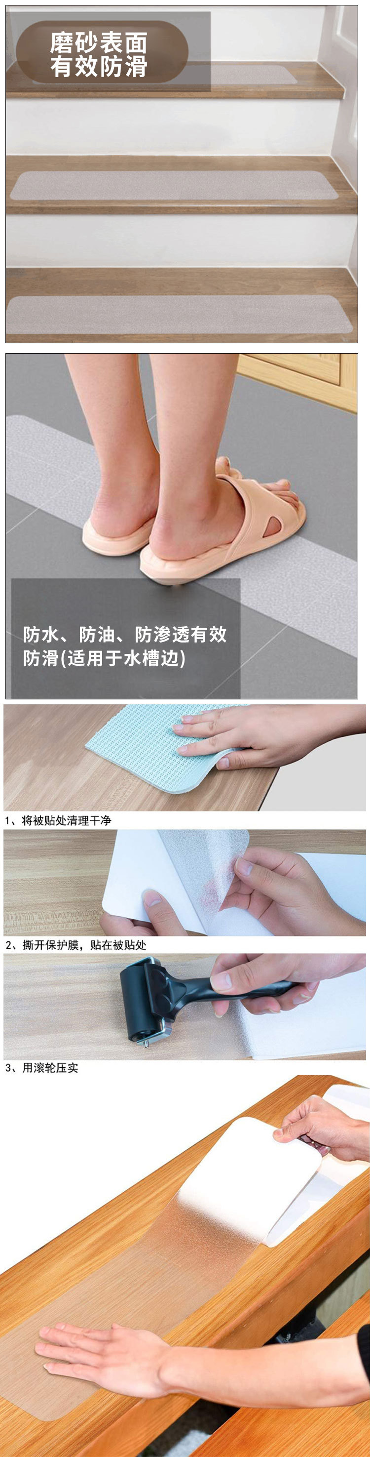 | Escenarios de aplicación | Venta al por mayor de cinta antideslizante PEVA cinta antideslizante de Goma transparente cinta antideslizante escalera de baño pegatinas antideslizantes suelas pegatinas antideslizantes |
