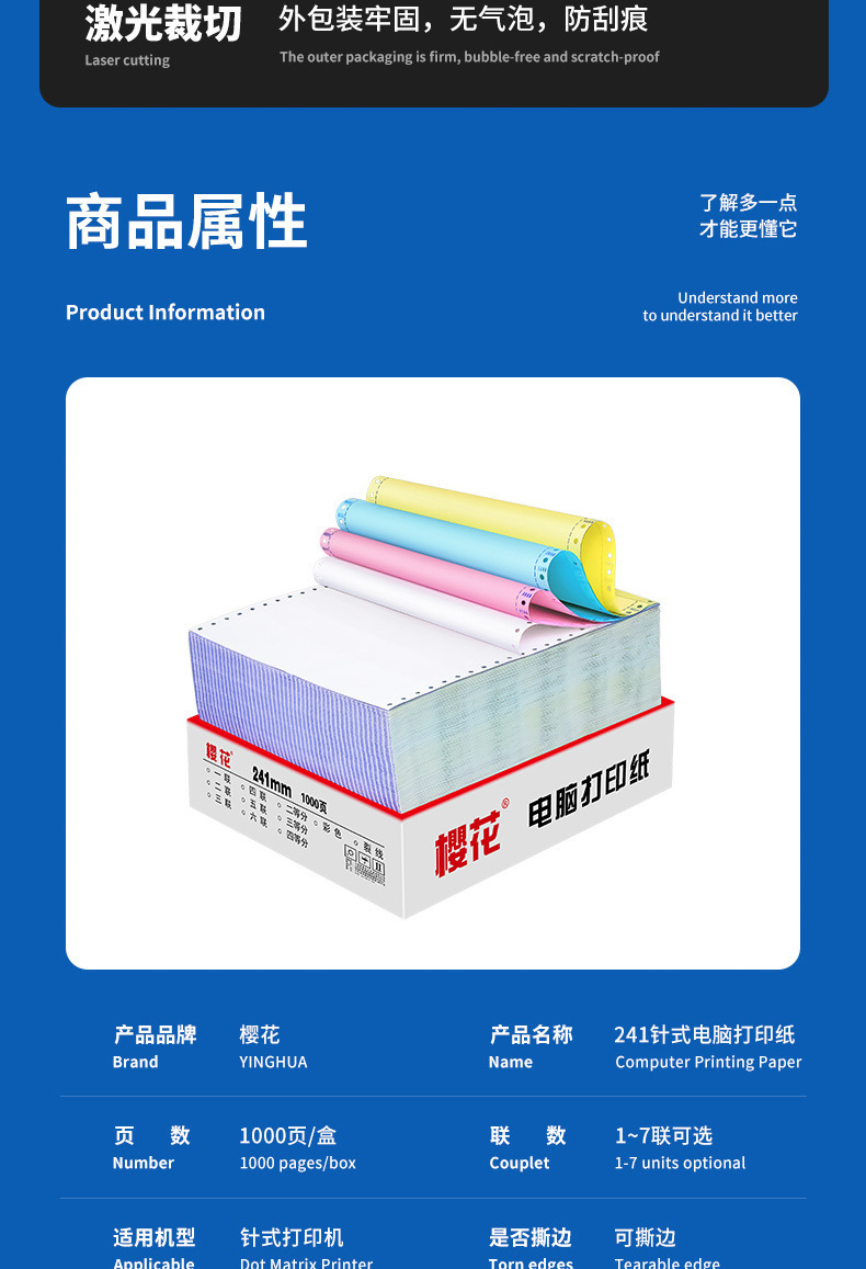Flor de cerezo 1000 páginas papel de impresión de aguja de computadora 241 triple orden de entrega de segunda clase orden de entrega triple