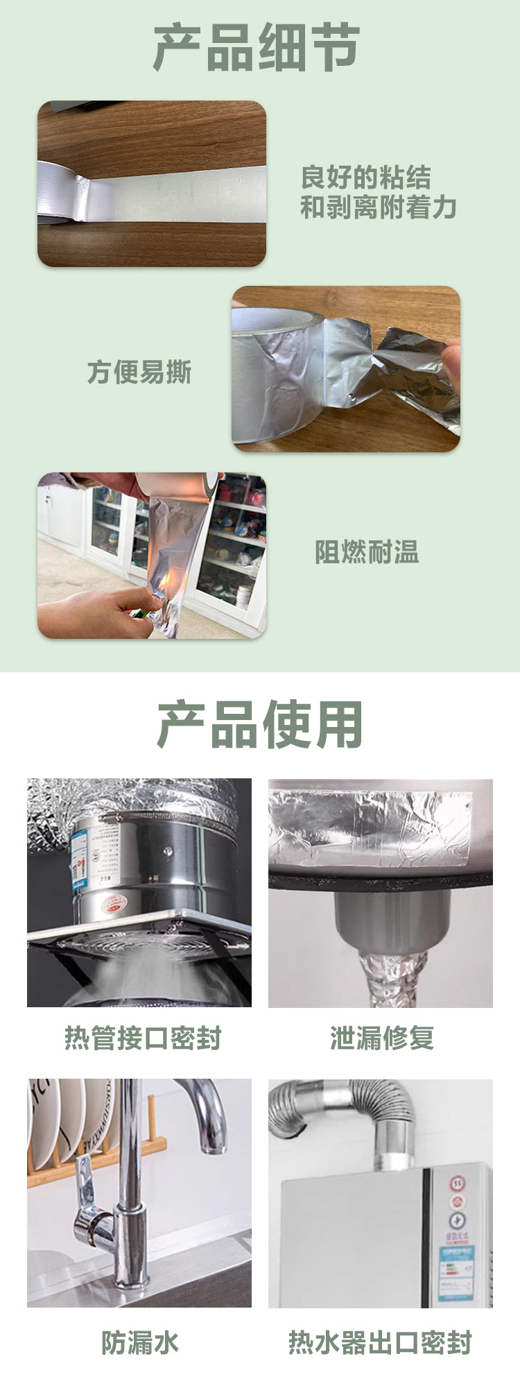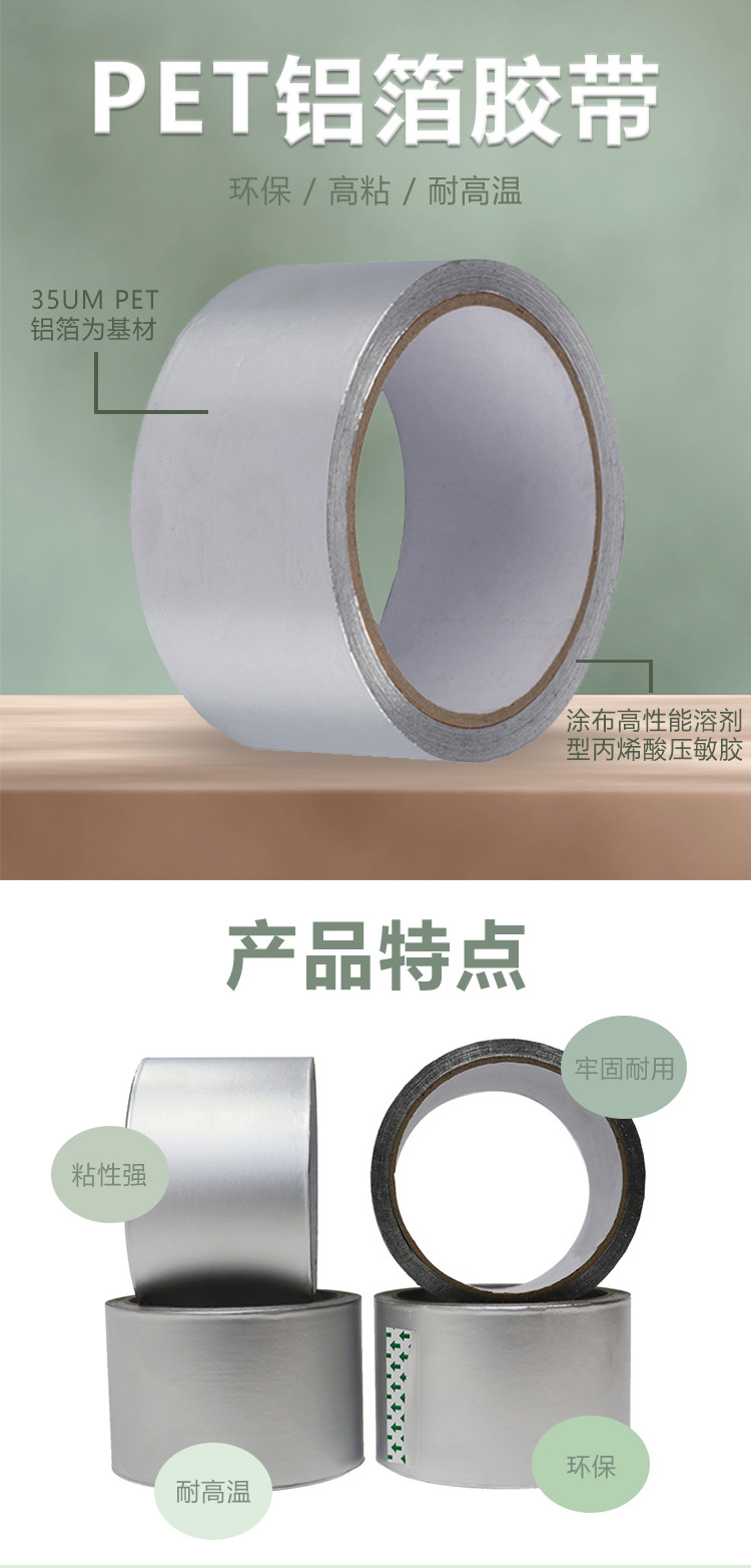 Cinta de papel de aluminio compuesto de PET, sellado de tuberías de aire acondicionado, cinta de papel de aluminio resistente a altas temperaturas, impermeable para cocina y baño, ignífugo