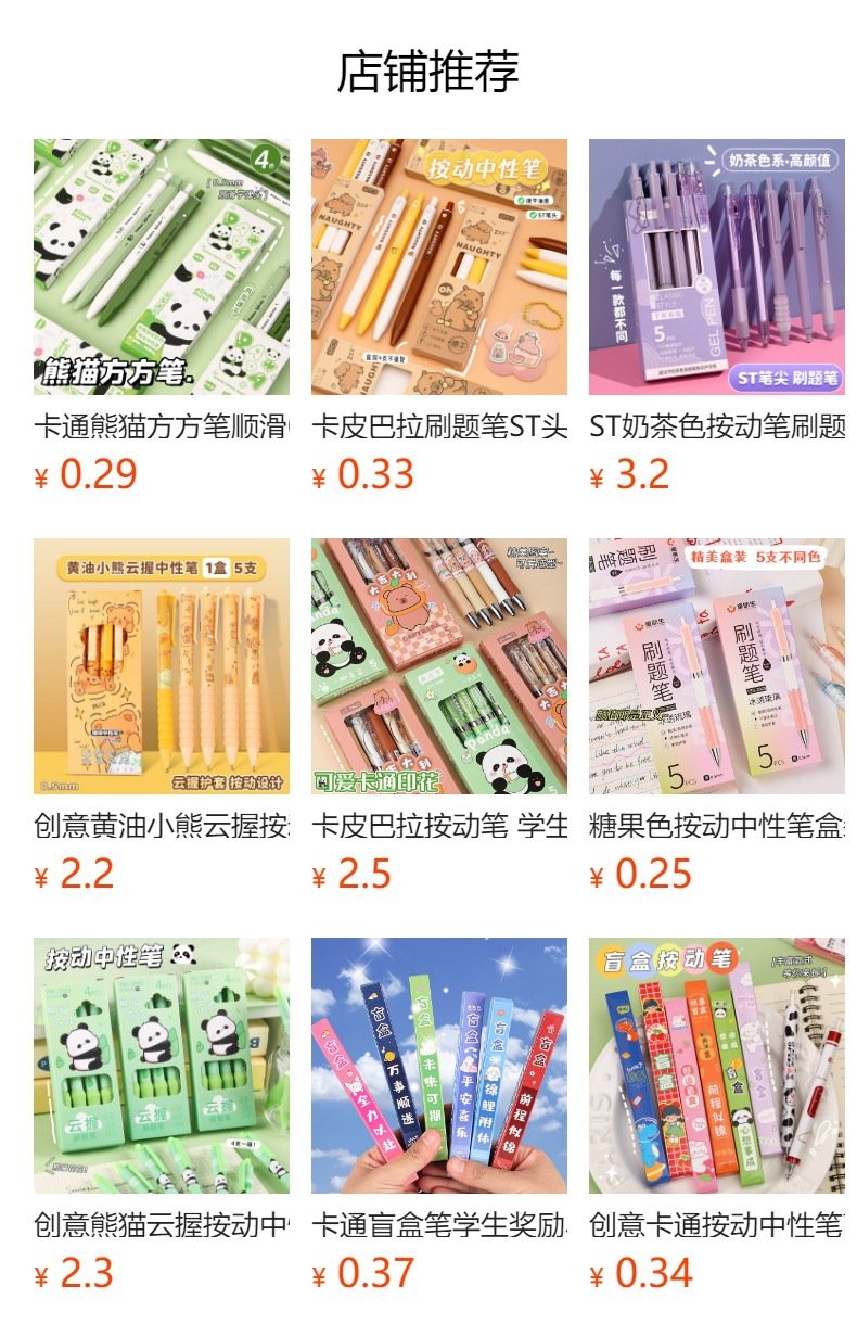Bolígrafo cuadrado panda de dibujos animados suave pluma de góner de 0,5mm de presión estudiante examen de cabeza ST lápiz de cepillado de secado rápido al por mayor