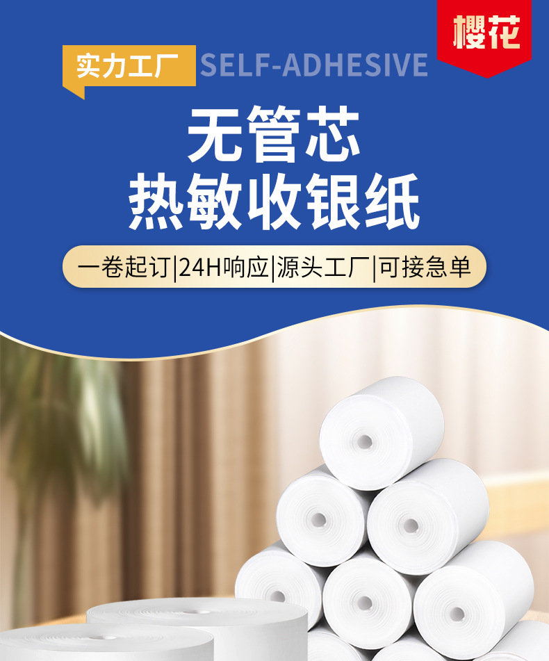 Suministro directo de fábrica flor de cerezo papel de caja registradora térmica 57*50 papel de máquina de recibo Meituan papel de impresión para llevar papel de impresora