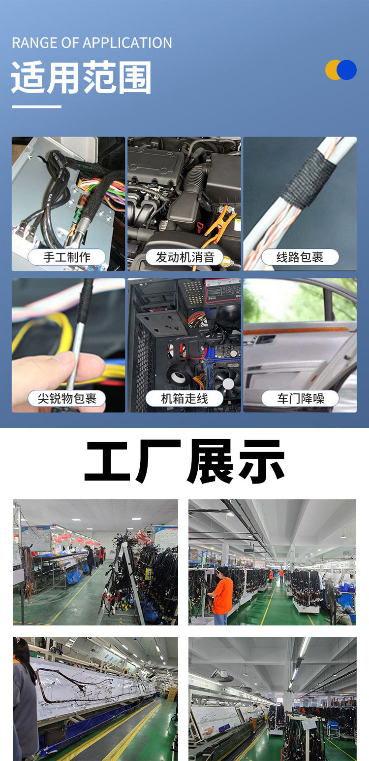 | Escenarios de uso | Cinta de arnés a base de tela resistente a altas temperaturas, resistente al desgaste y a la reducción de ruido, cinta de arnés que se puede rasgar a mano |