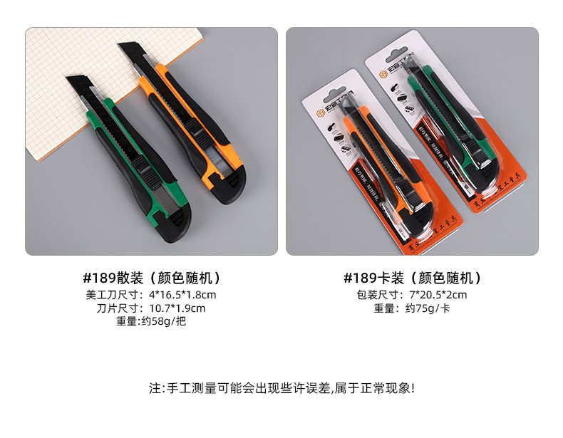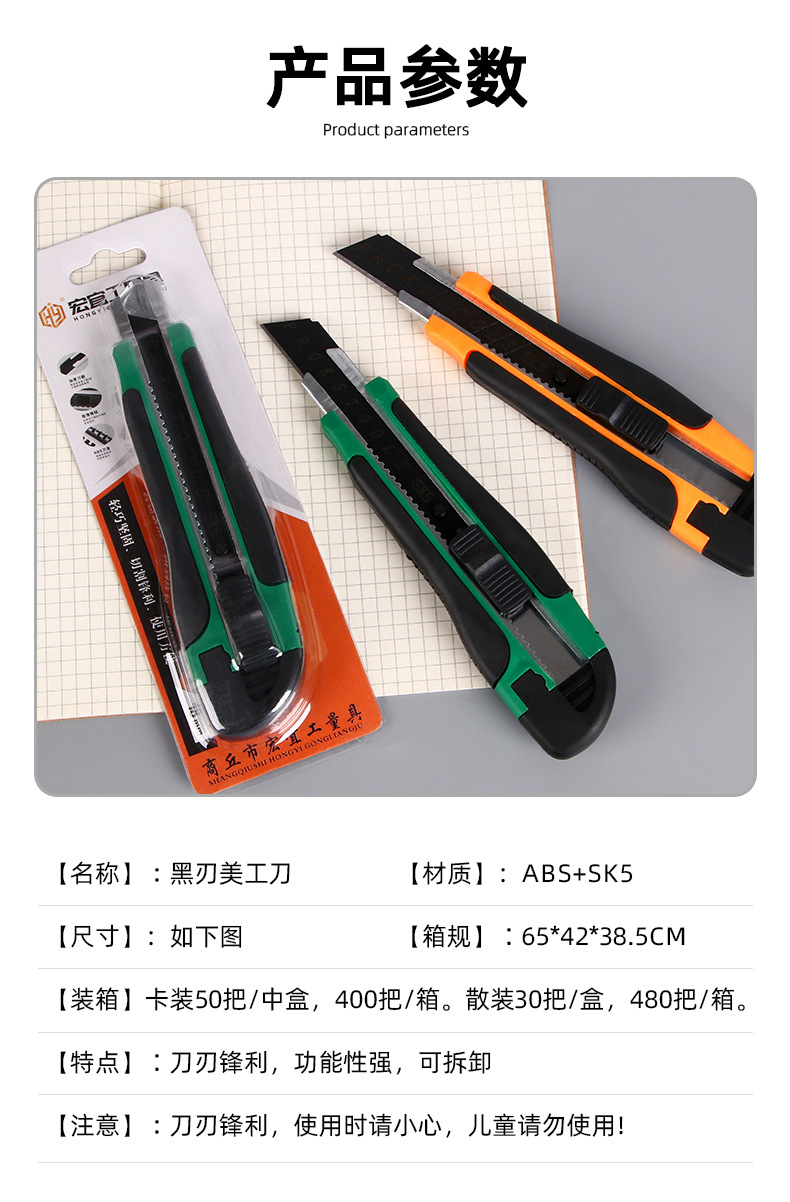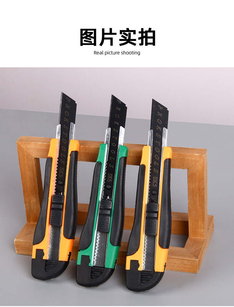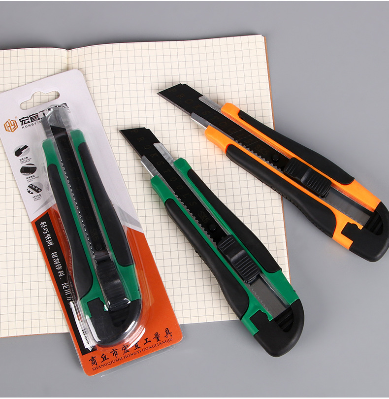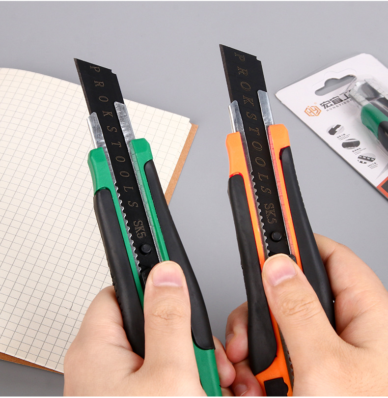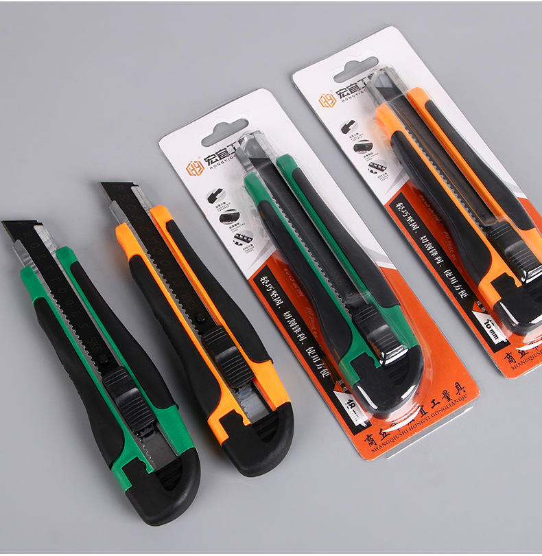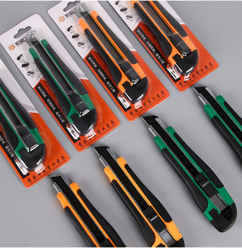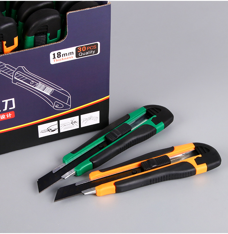 Cuchillo de uso con tarjeta de succión Cuchillo de desembalaje exprés grande de 18mm al por mayor Hoja negra Cuchillo de papel tapiz duradero afilado Cuchillo de papel