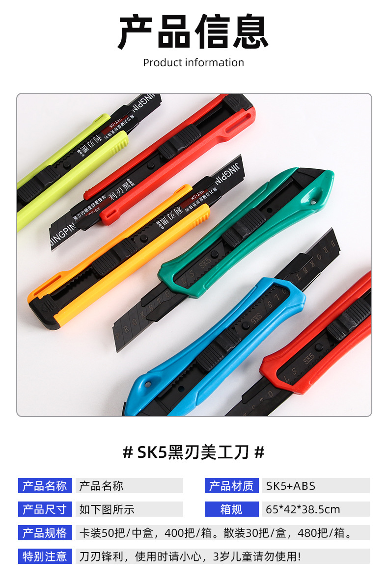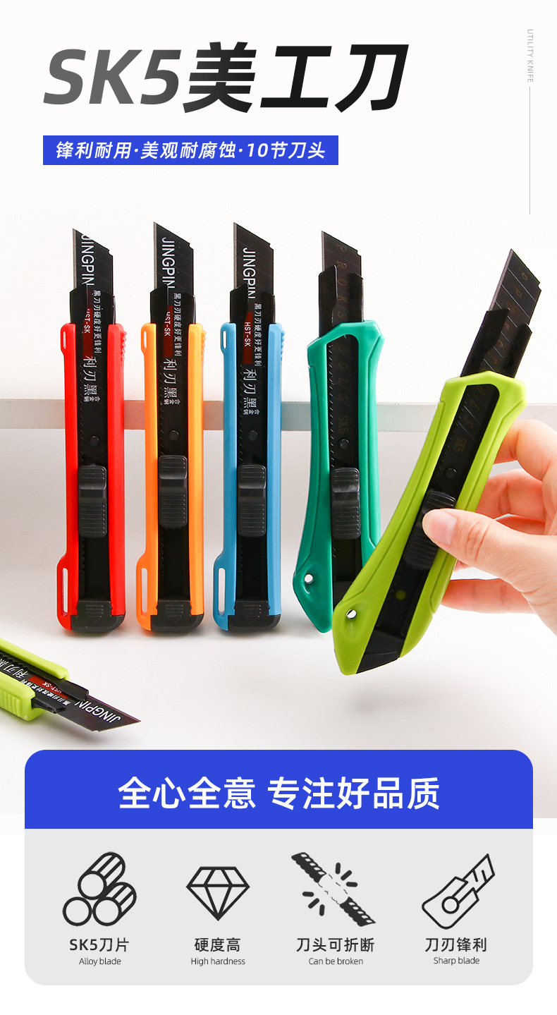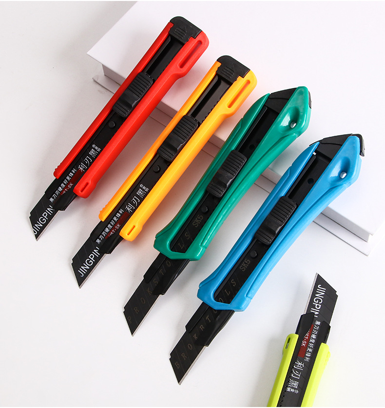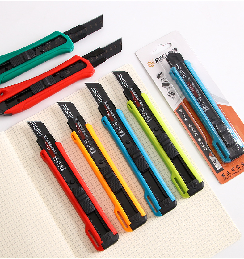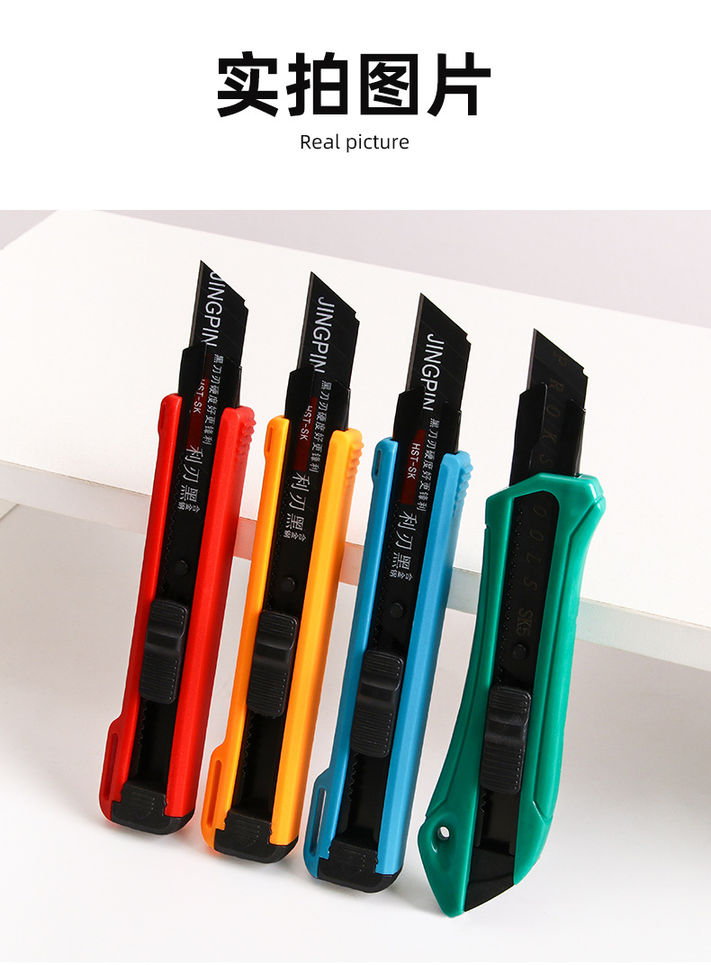 Cuchillo de uso general de hoja negra SK5 Cuchilla grande de 18mm Cuchillo de papel tapiz de metal de plástico Cuchillo de caja exprés Cuchillo de papel al por mayor