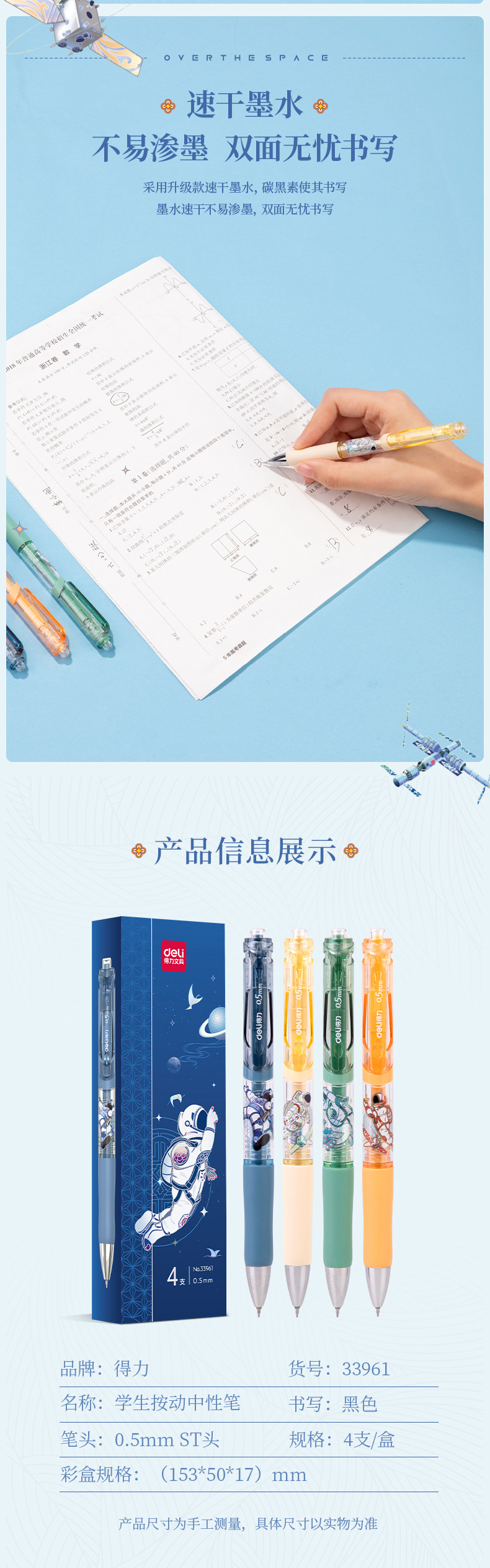 Estudiantes con bolígrafo neutro tema aeroespacial con secado rápido ST cabeza 0.5 bolígrafo negro de presión de papelera 33961