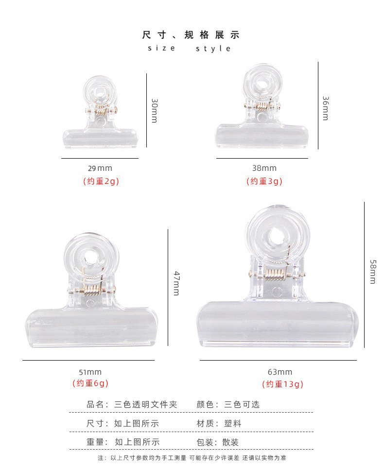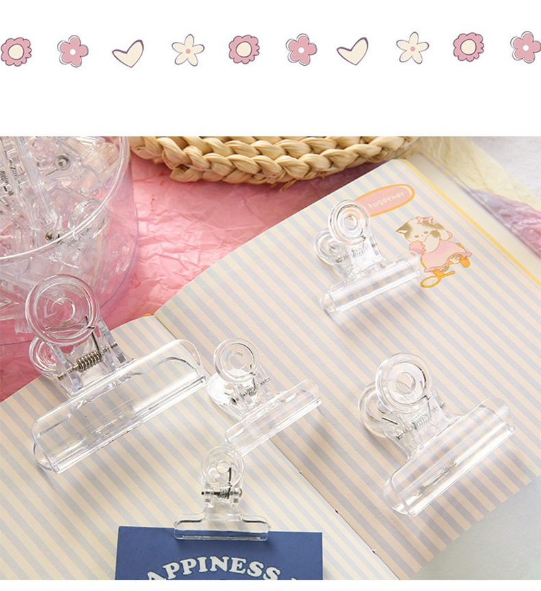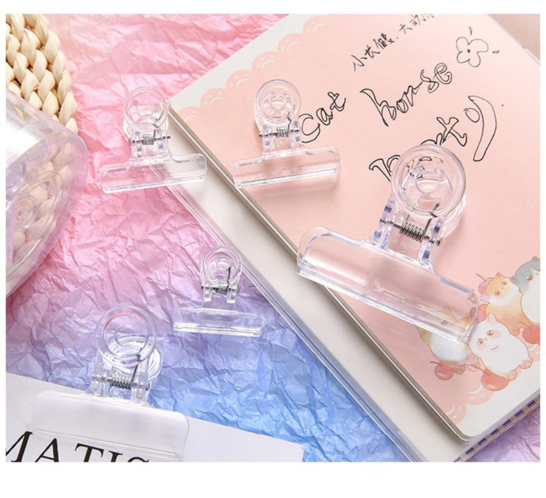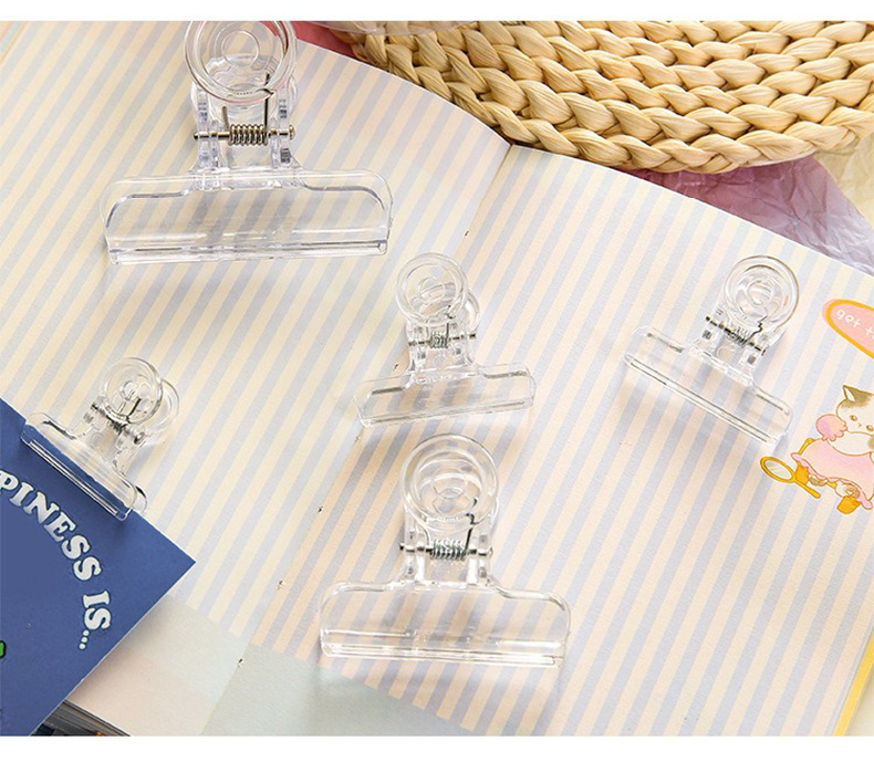 Clip de cola de milano transparente creativo Carpeta de datos de estilo ins para estudiantes, material de oficina de aprendizaje, clip de cola larga, clip de factura pequeño