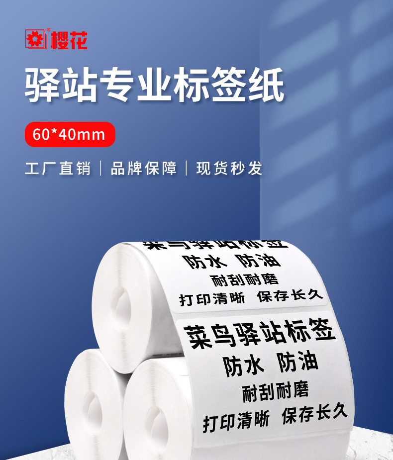 Flor de cerezo etiqueta de la estación expresa 60*40 etiqueta adhesiva térmica de tres pruebas etiqueta de papel de impresión etiqueta de papel
