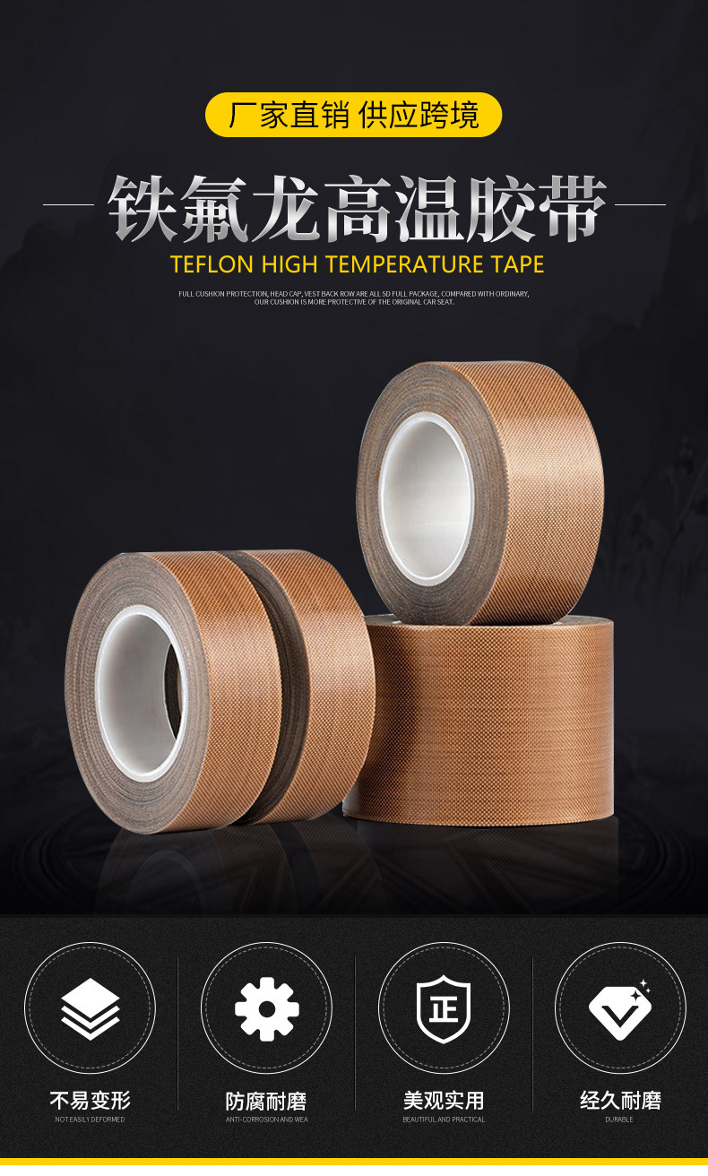 Customized PTFE marrón hierro teflón cinta de sellado resistente a altas temperaturas aislamiento térmico resistente al desgaste cinta adhesiva estática