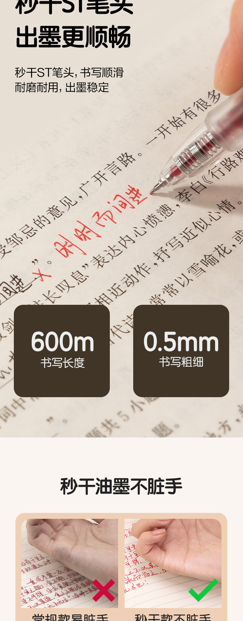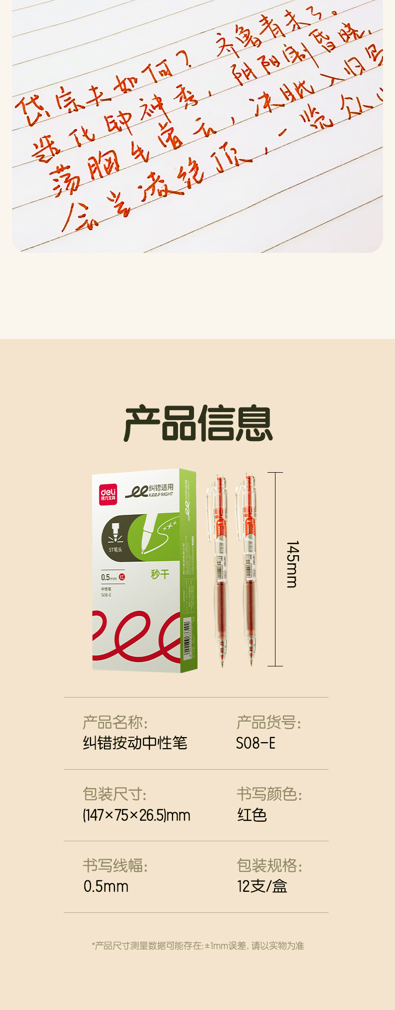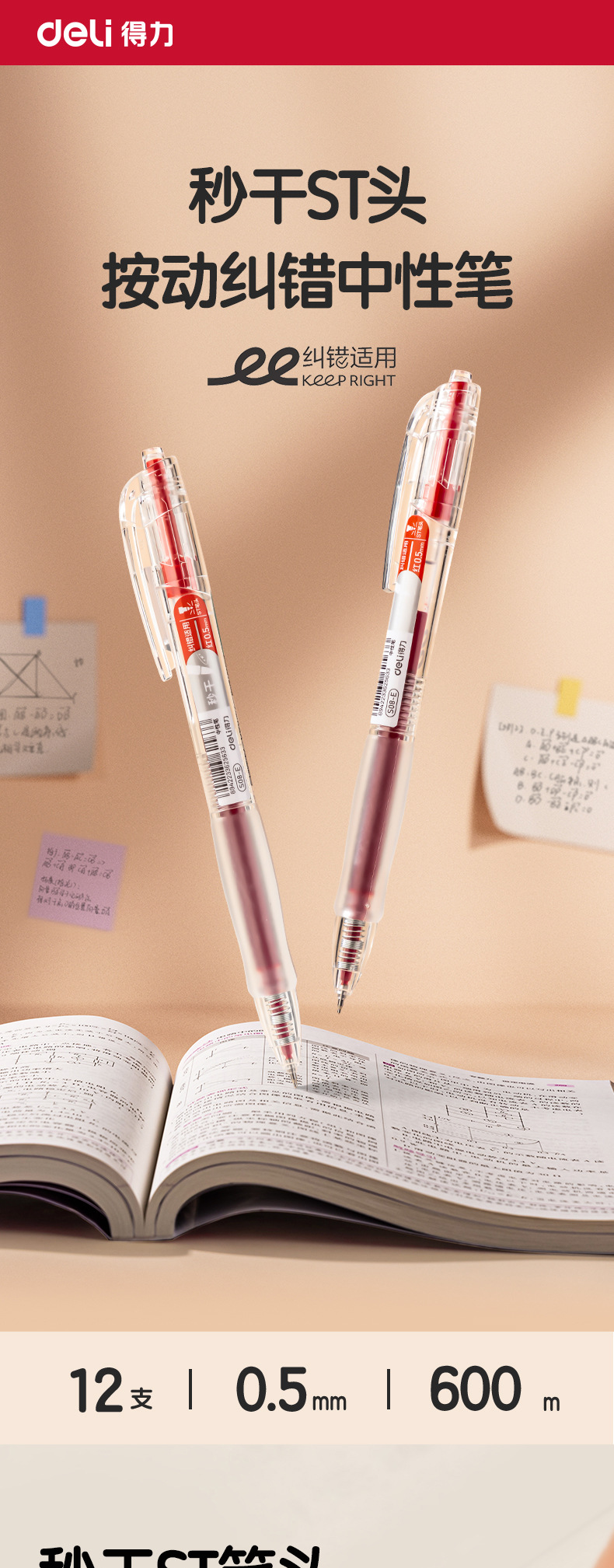 Deli Red Pen Maestro para estudiantes Corrección de tareas Marca de corrección de errores del estudiante Spike st Head 0.5mm Rojo