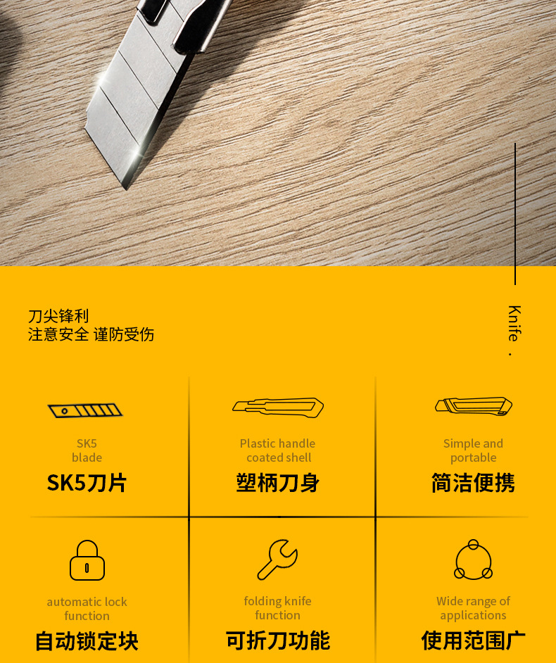Cuchillo de uso general Deli Cuchillo de herramientas de hardware Cuchillo expreso al por mayor Papel de corte Cuchillo de papel tapiz Cuchillo de cartón de acero inoxidable Durable