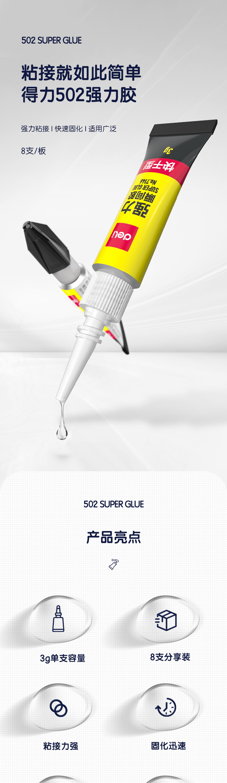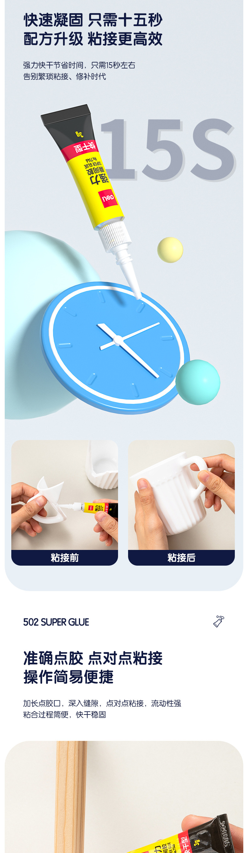 Deli 7146 superpegamento 502 pegamento adhesivo plástico metal vidrio cerámica madera zapatos zapatos adhesivos pegamento instantáneo