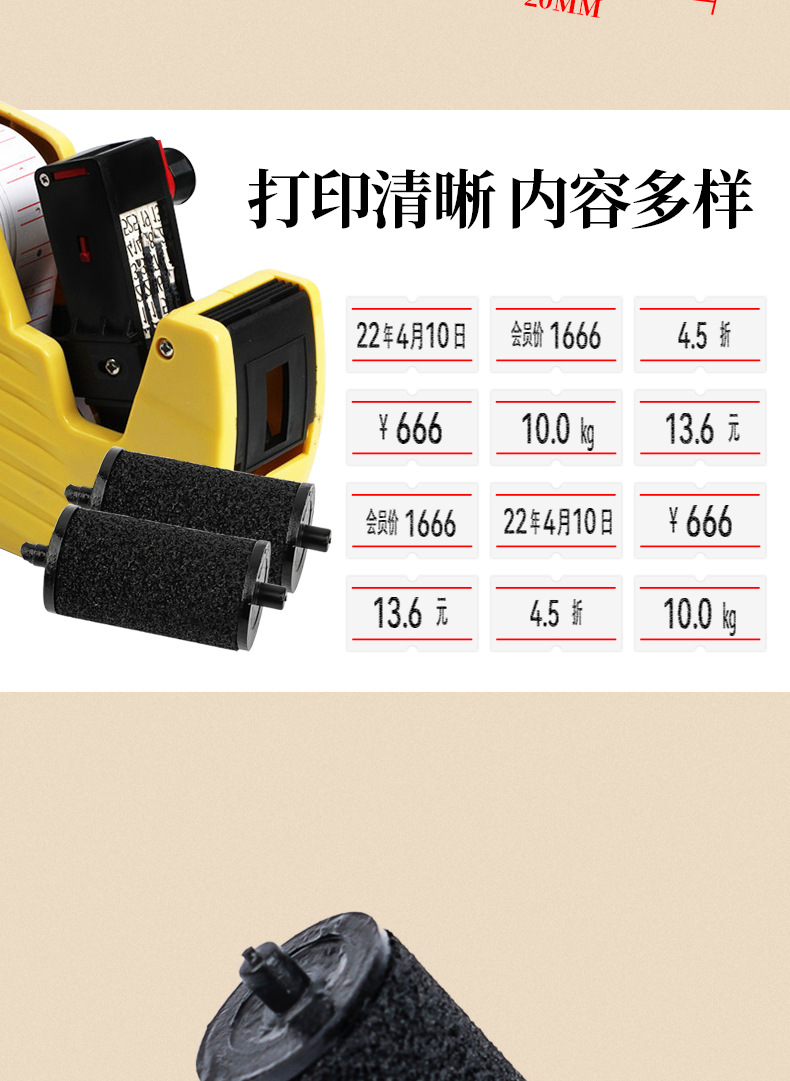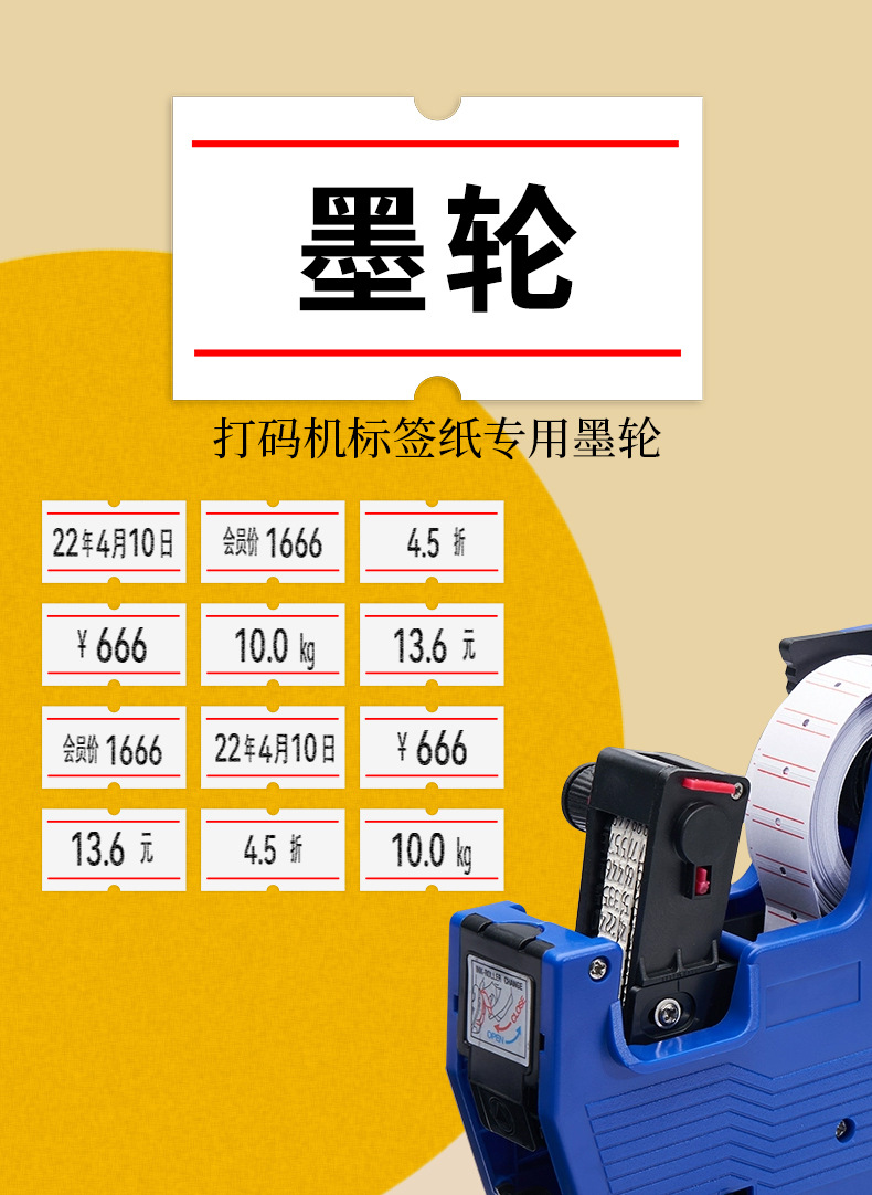 Máquina de fijación de precios Rueda de tinta Precio de la tinta Máquina de etiquetas de una y dos filas Rueda de tinta Accesorios de precios Máquina de codificación Cartucho de tinta