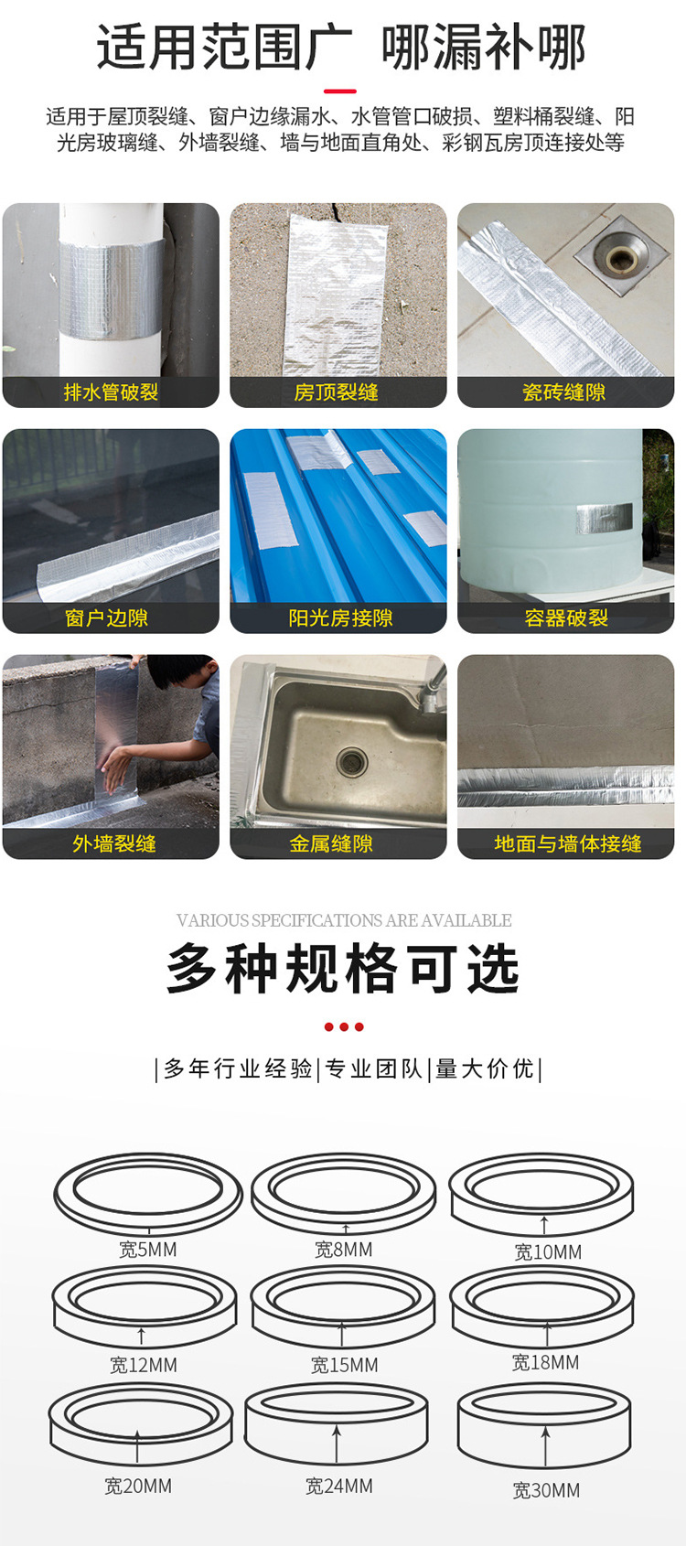 Cinta de butilo personalizada autoadhesiva impermeable resistente al sellado de alta y baja temperatura para grietas en las tuberías de la cocina del techo