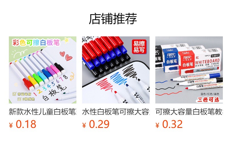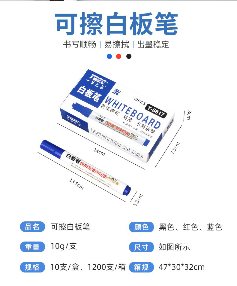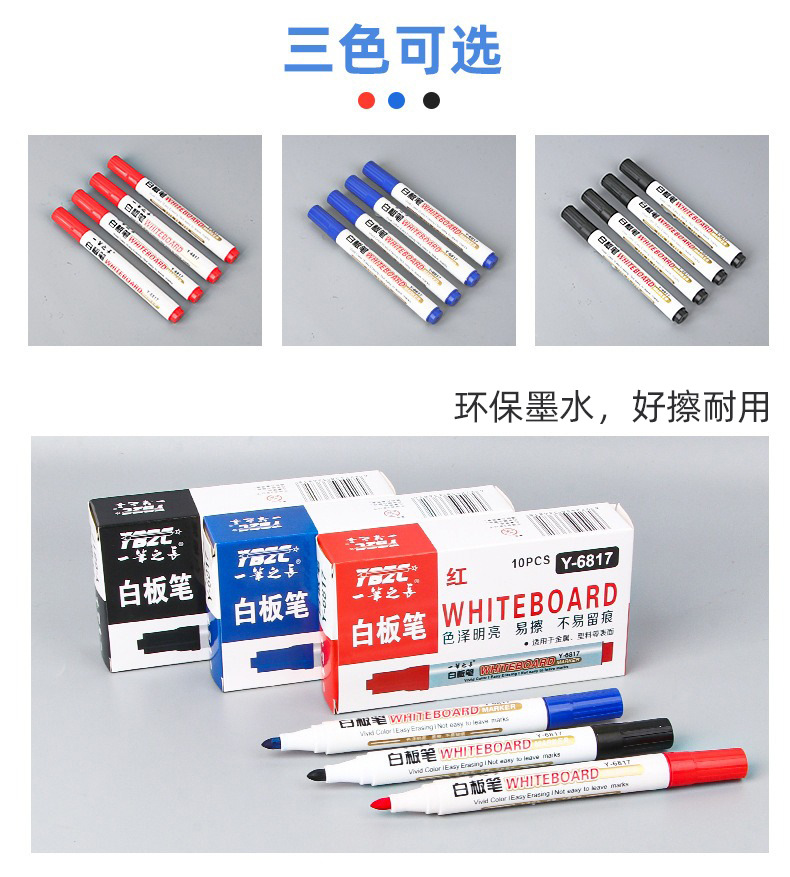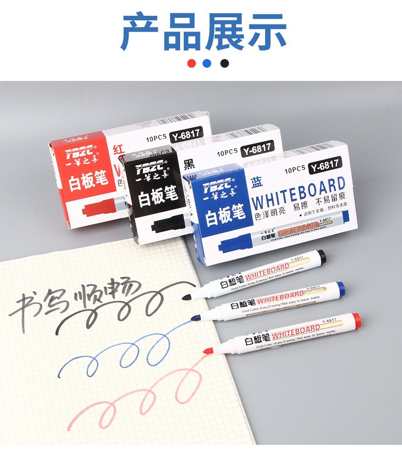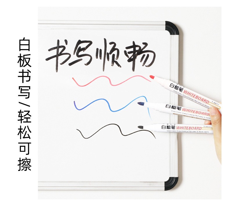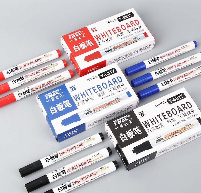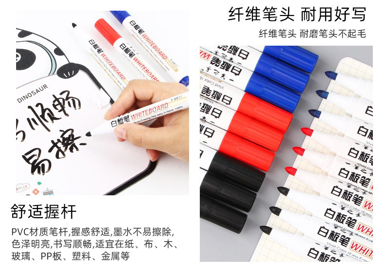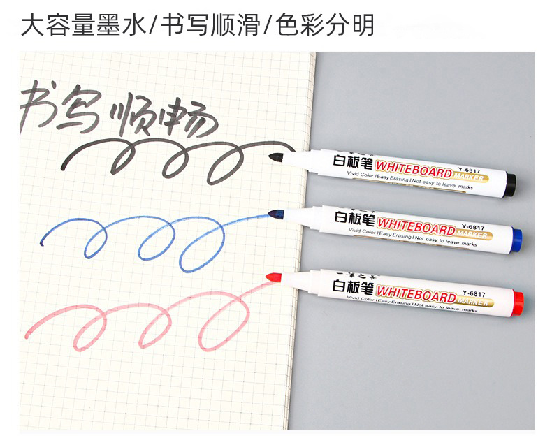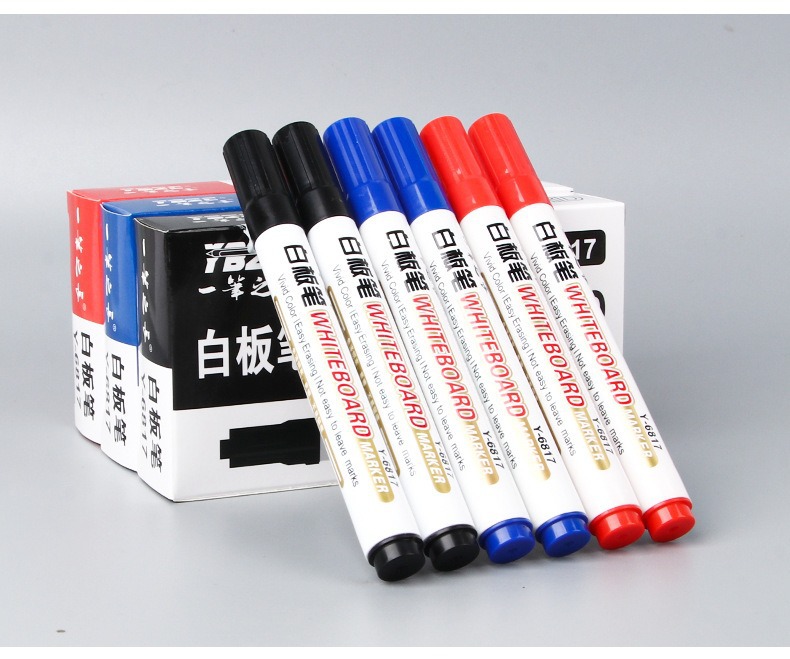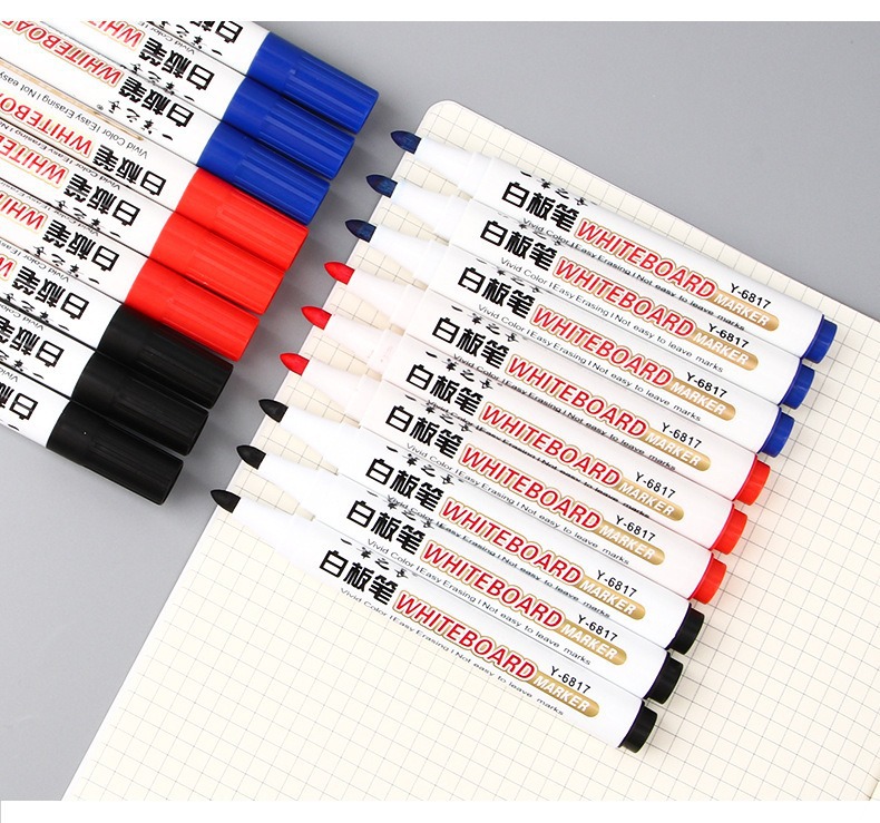 Pluma blanca de gran capacidad borrable enseñanza pluma negro rojo azul marcador a base de agua fácil de limpiar conferencia de escritura pluma papelería venta al por mayor