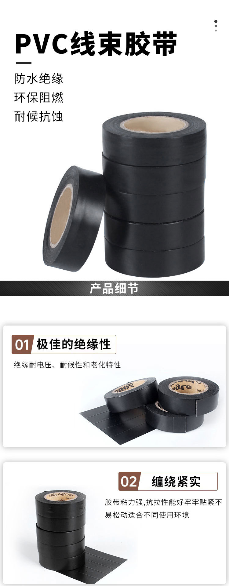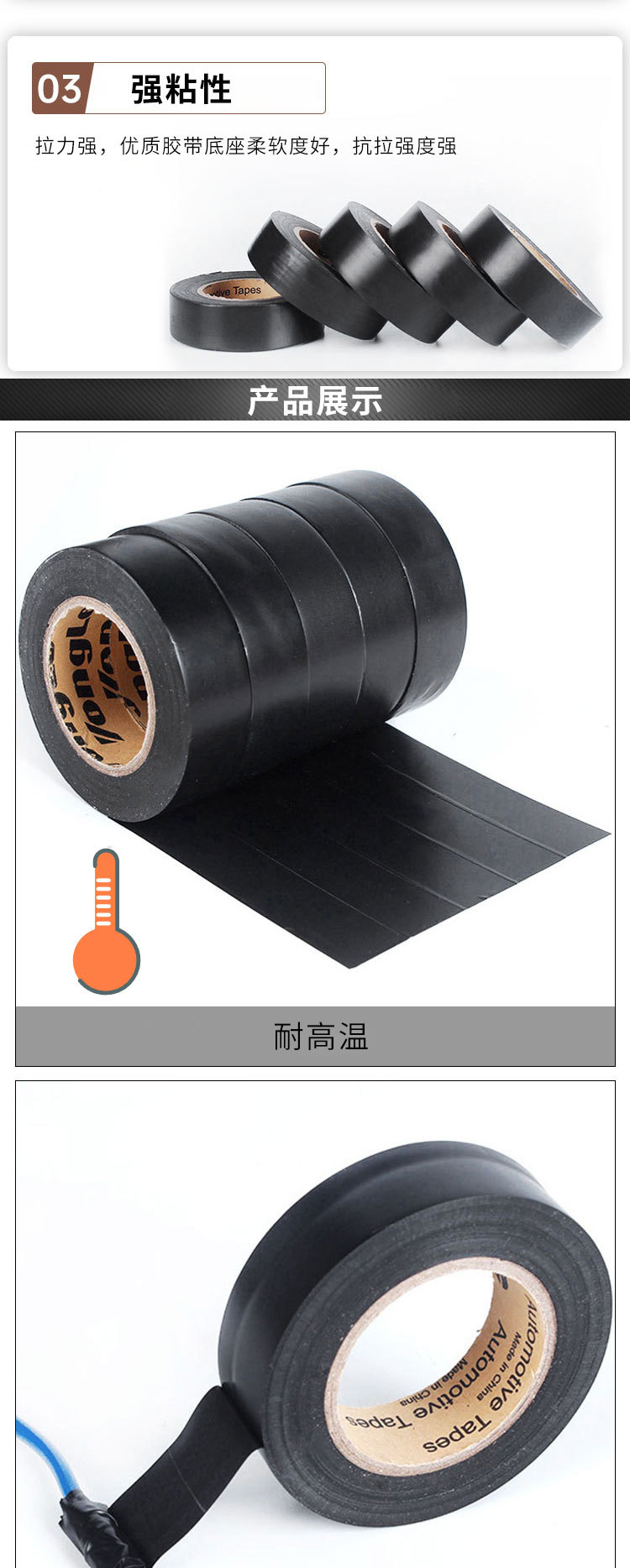 | LOGO | Cinta de mazo de cables de pvc Resistencia a la temperatura 85 ° C Cinta impermeable de alta viscosidad Fabricante de fuente de cinta de mazo de cables de automóvil de PVC |