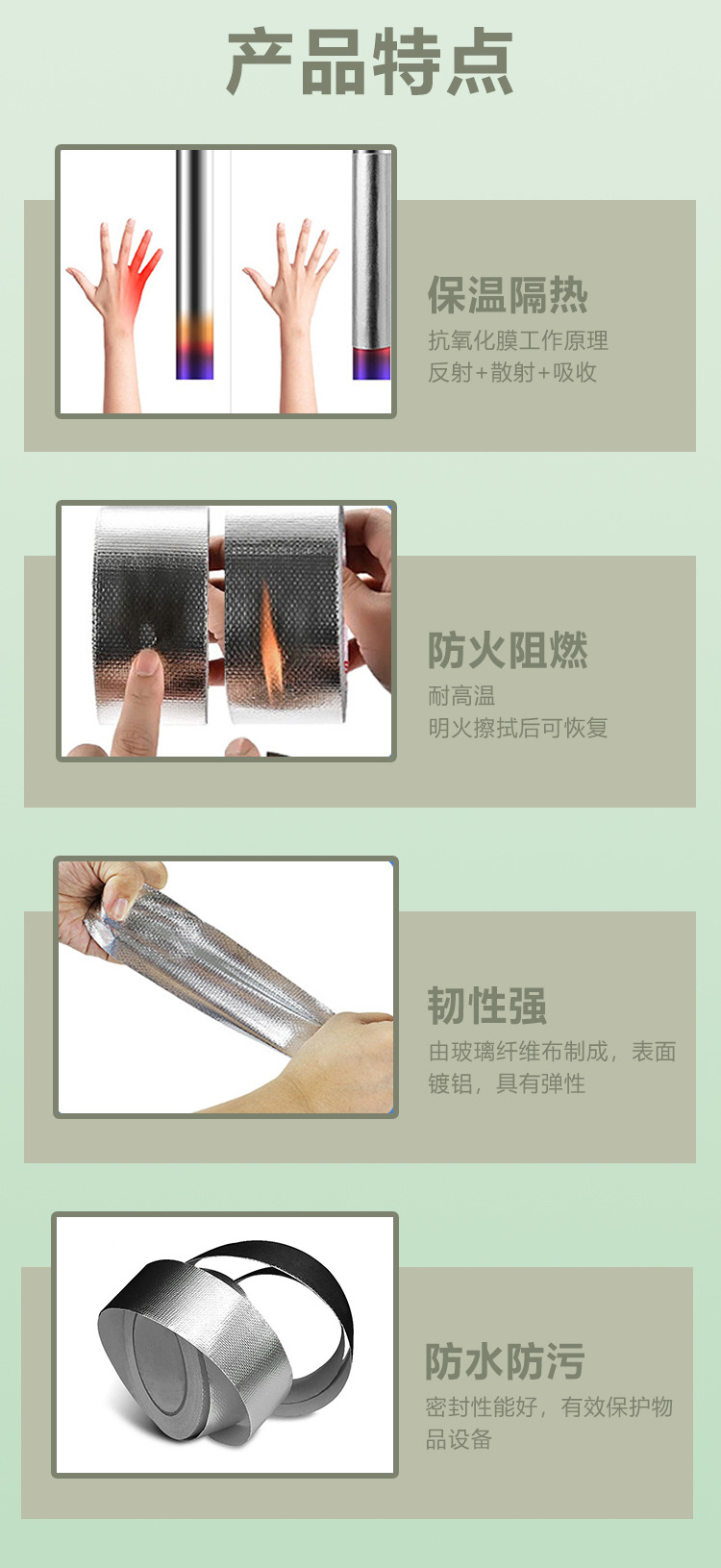 | Nombre | Tela de fibra de vidrio, cinta de papel de aluminio, aislamiento térmico, tubería de ventilación, resistencia a la corrosión, retardante de llama, papel de aluminio autoadhesivo, suministro especial transfronterizo |