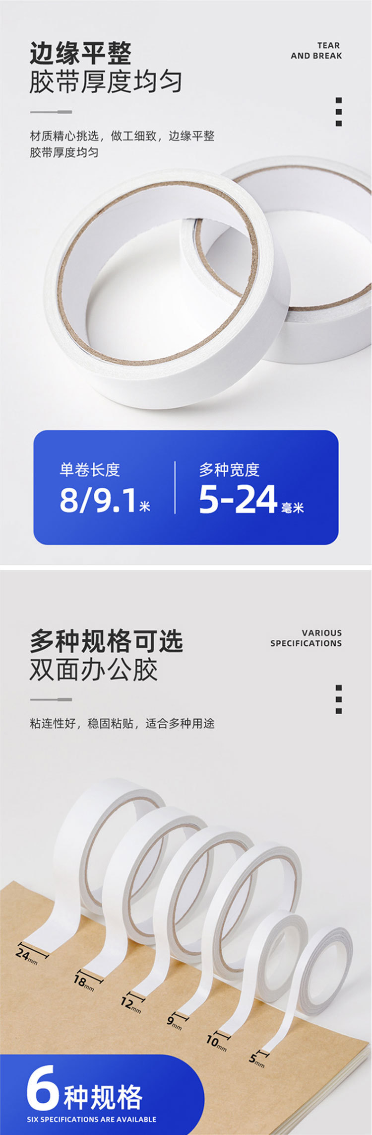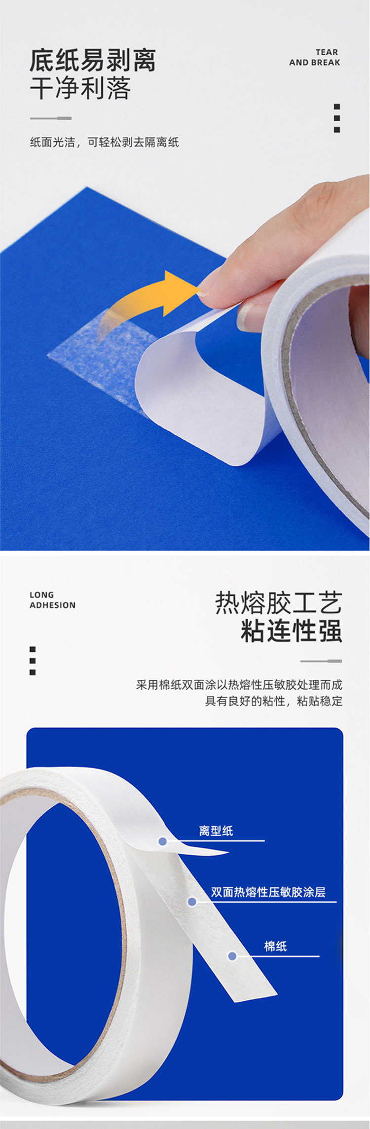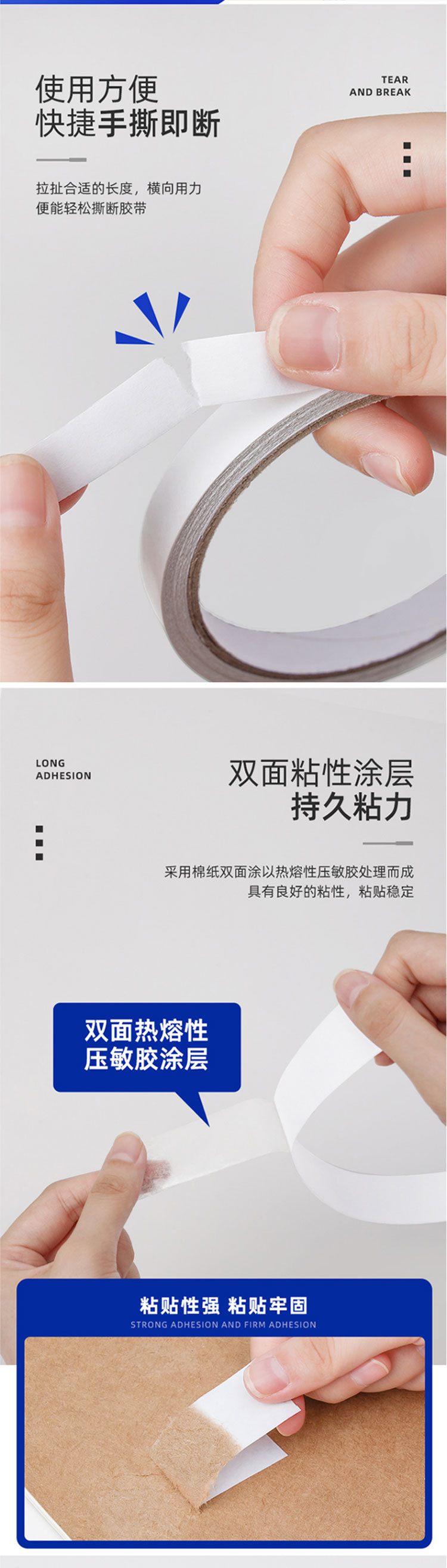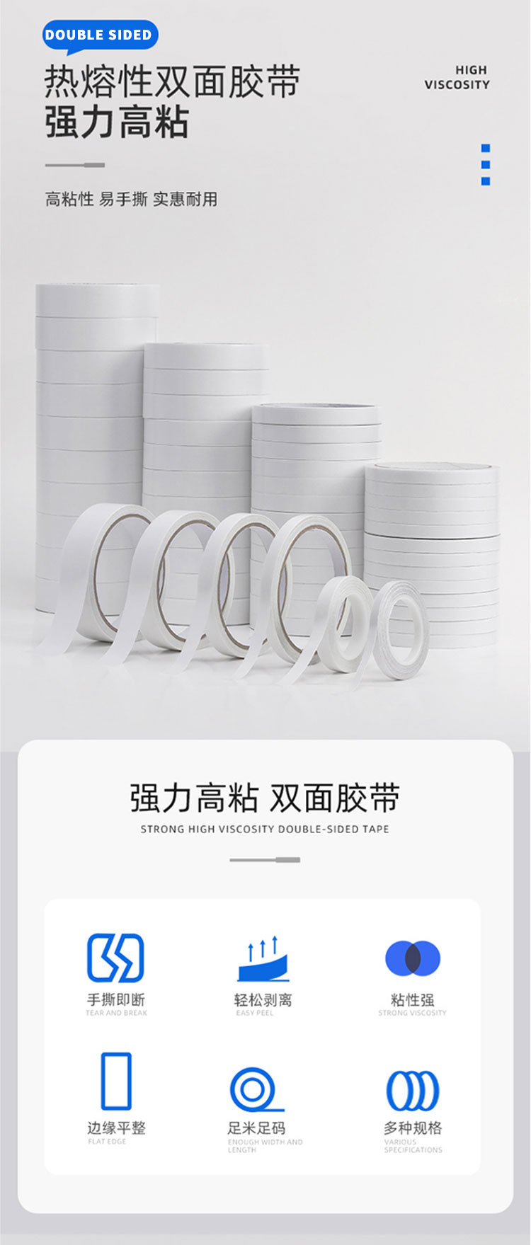 Papel de algodón de fusión en caliente de alta viscosidad adhesivo de doble cara estudiante blanco rasgón de la mano fuerte cinta adhesiva de doble cara suministros de oficina transparente