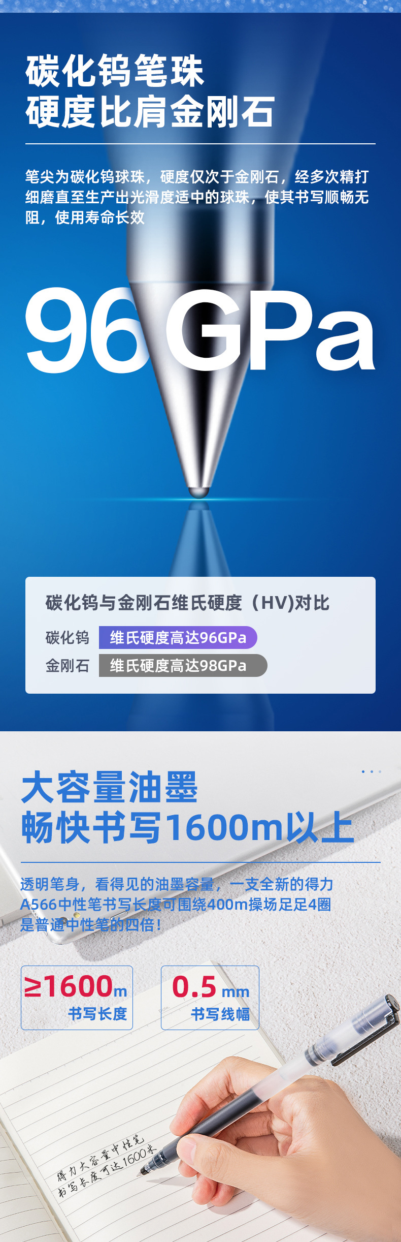 Papelería de gran capacidad de bolígrafo neutro 4 veces escritura examen de estudiantes con 0.5 bala negra gran capacidad de escritura oficina