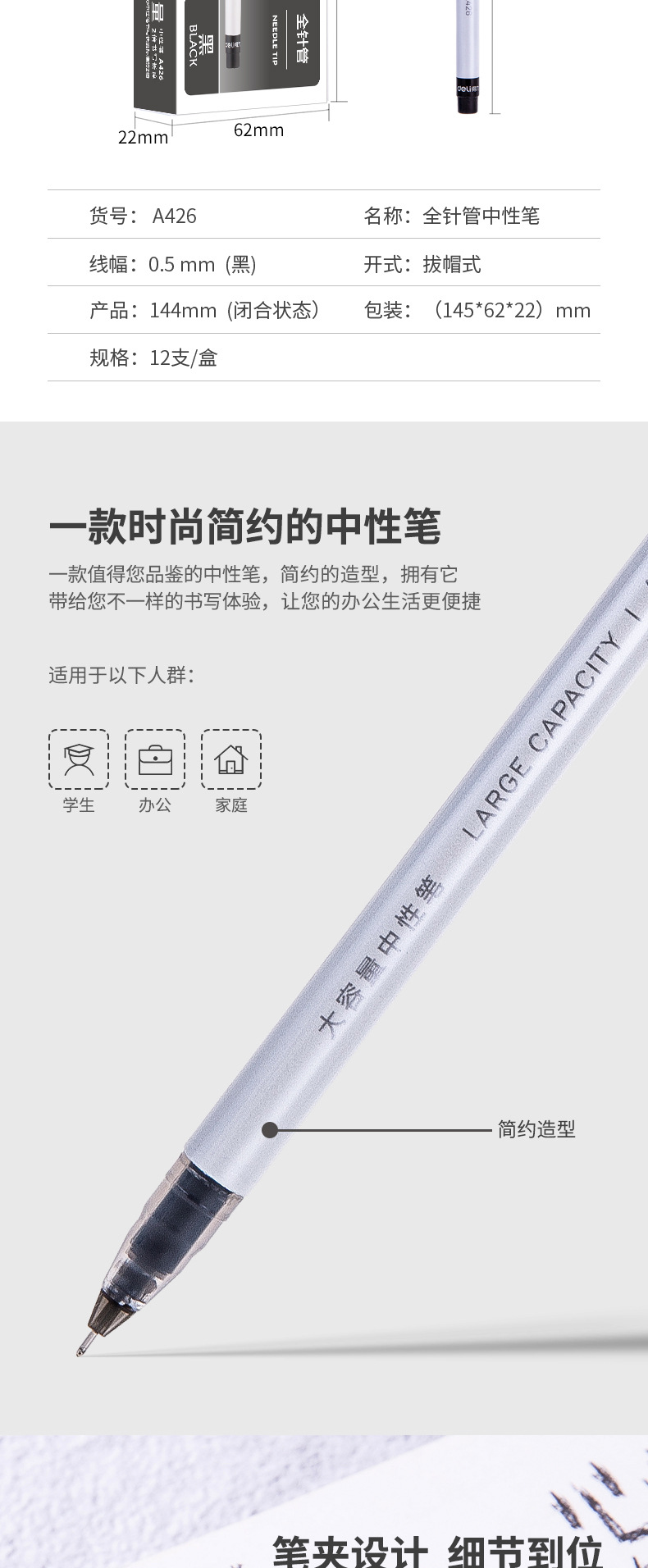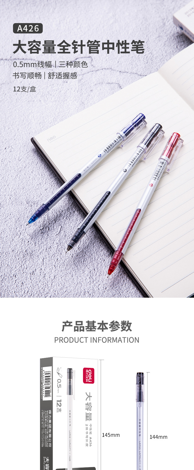 Lápiz neutro de gran capacidad A426 lápiz de firma negro rojo de 0.5mm para estudiantes de preparación para la oficina de negocios
