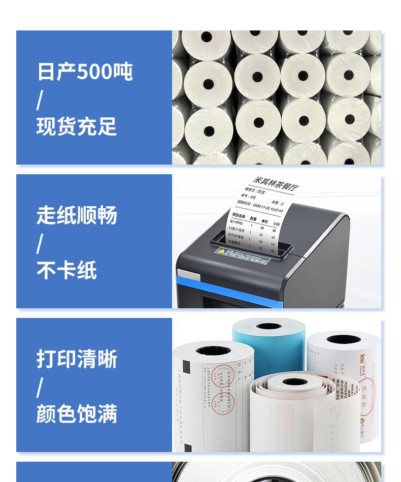 Cualquier especificación de papel térmico personalizado papel de caja registradora térmica logotipo impresión patrón de color papel de boleto pequeño papel de impresión térmica