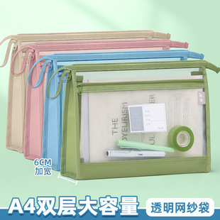 Bolsa de archivo de clasificación de sujetos A4 hilo de malla simple doble cremallera papel de prueba bolsa de trabajo bolsa de sujeción transparente para estudiantes de primaria