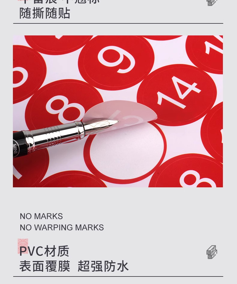 PVC impermeable número adhesivo adhesivo número de serie número adhesivo número de mesa de comedor etiqueta número de entrada