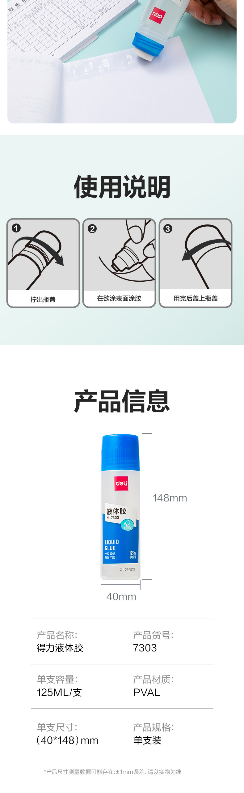 DeLi7303 pegamento líquido 125ml papelería pegamento de mano pegamento líquido sellado al por mayor