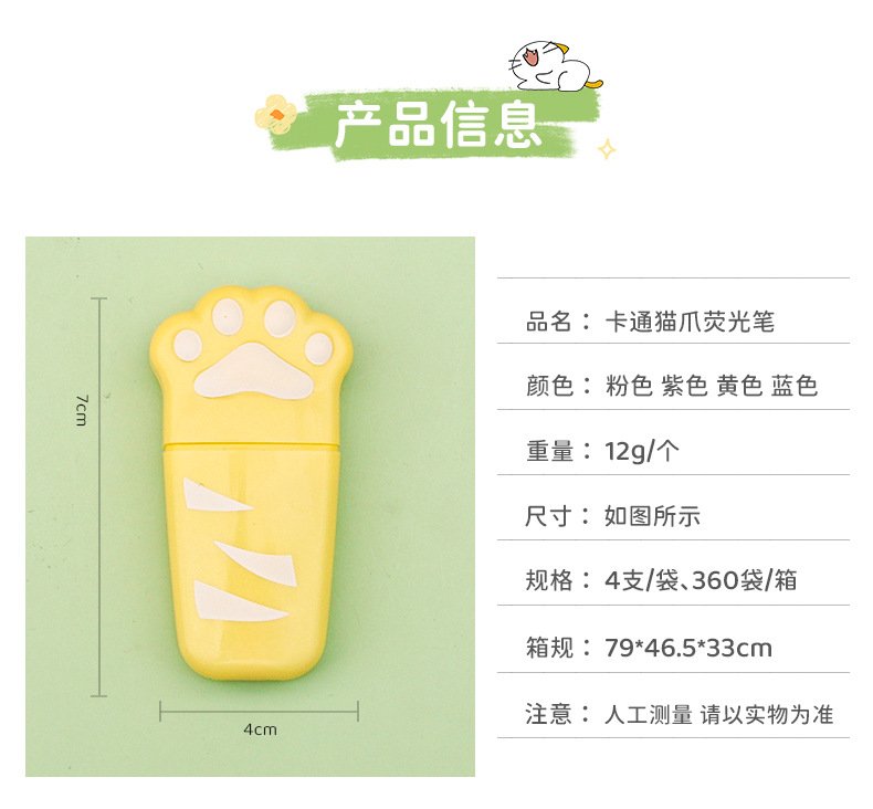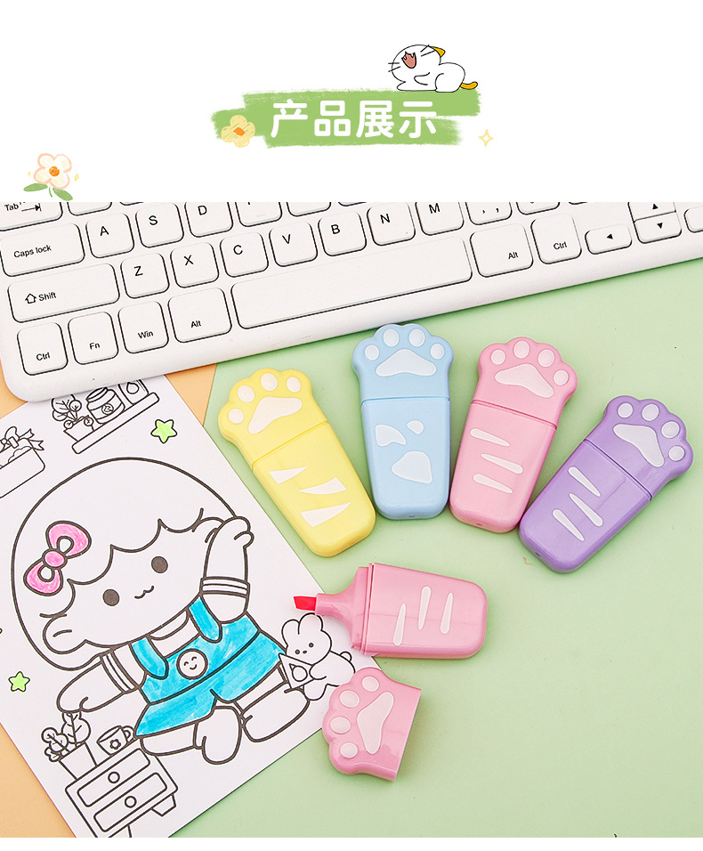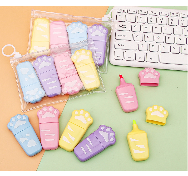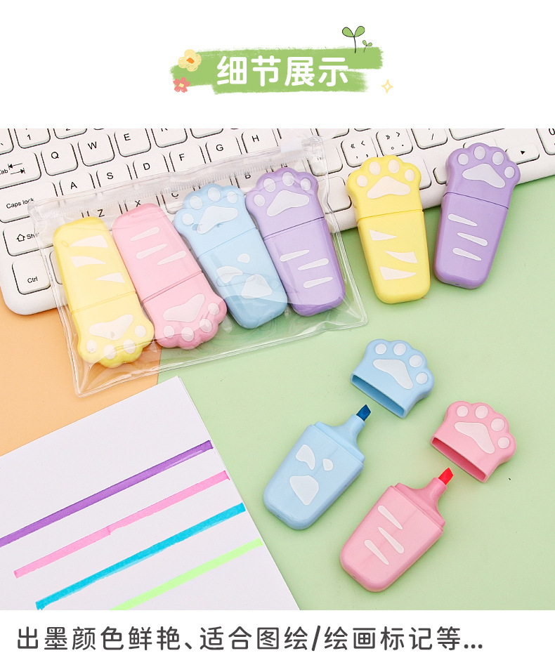 Nuevo gato garra protección de ojos color resaltador estudiante de alta apariencia papelería clave marca graffiti diario marcador al por mayor