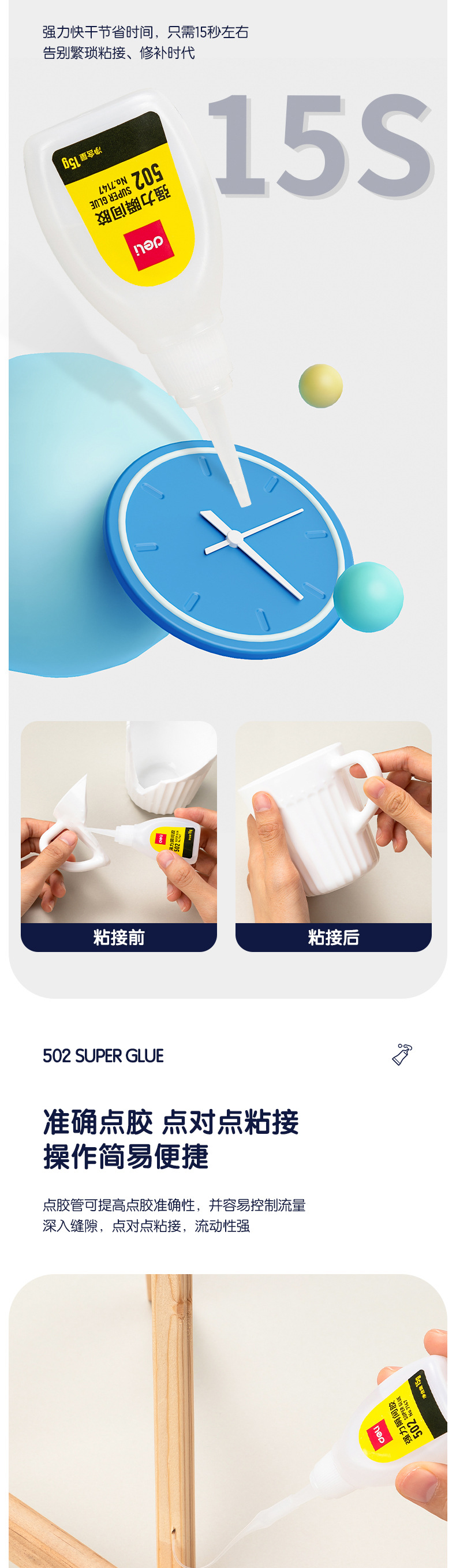 DeLi 502 pegamento 7147 pegamento blando de agua instantáneo mano fuerte rápido seco rápido pegamento plástico de metal súper fuerte